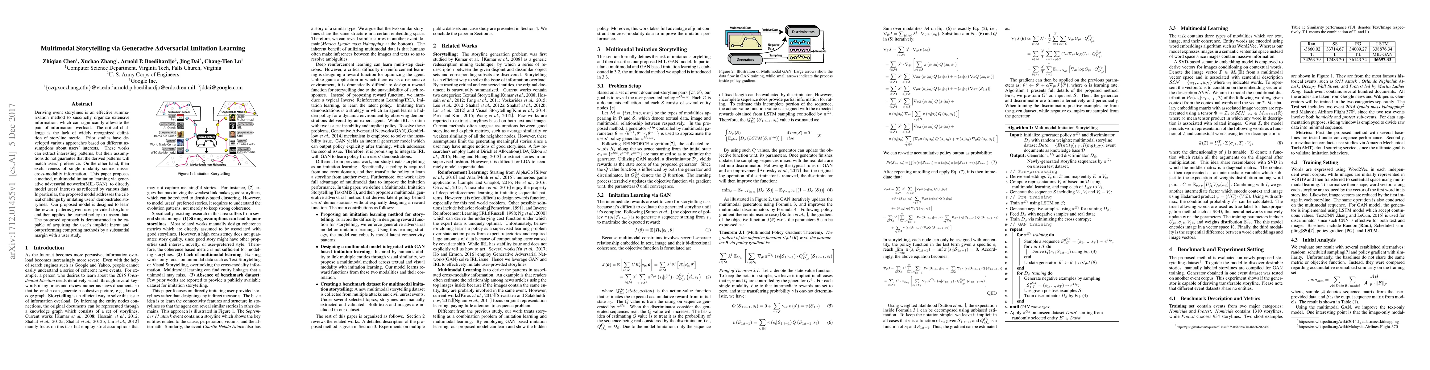 A new method called Multimodal Imitation Learning via Generative Adversarial Networks (MIL-GAN) is proposed to derive event storylines from users' interests, outperforming existing methods with a substantial margin in a user study.