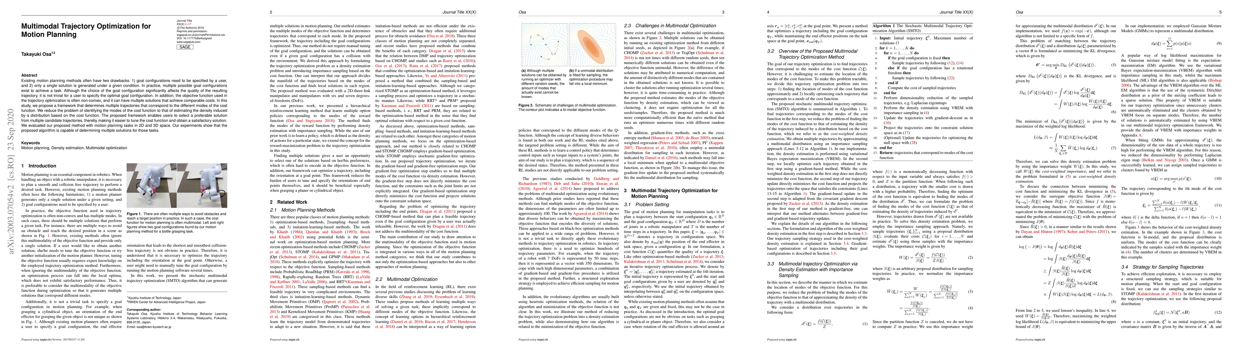 Existing motion planning methods often have two drawbacks: 1) goal configurations need to be specified by a user, and 2) only a single solution is generated under a given condition. In practice, multiple possible goal configurations exist to achieve a task. Although the choice of the goal configuration significantly affects the quality of the resulting trajectory, it is not trivial for a user to specify the optimal goal configuration. In addition, the objective function used in the trajectory optimization is often non-convex, and it can have multiple solutions that achieve comparable costs. In this study, we propose a framework that determines multiple trajectories that correspond to the different modes of the cost function. We reduce the problem of identifying the modes of the cost function to that of estimating the density induced by a distribution based on the cost function. The proposed framework enables users to select a preferable solution from multiple candidate trajectories, thereby making it easier to tune the cost function and obtain a satisfactory solution. We evaluated our proposed method with motion planning tasks in 2D and 3D space. Our experiments show that the proposed algorithm is capable of determining multiple solutions for those tasks.