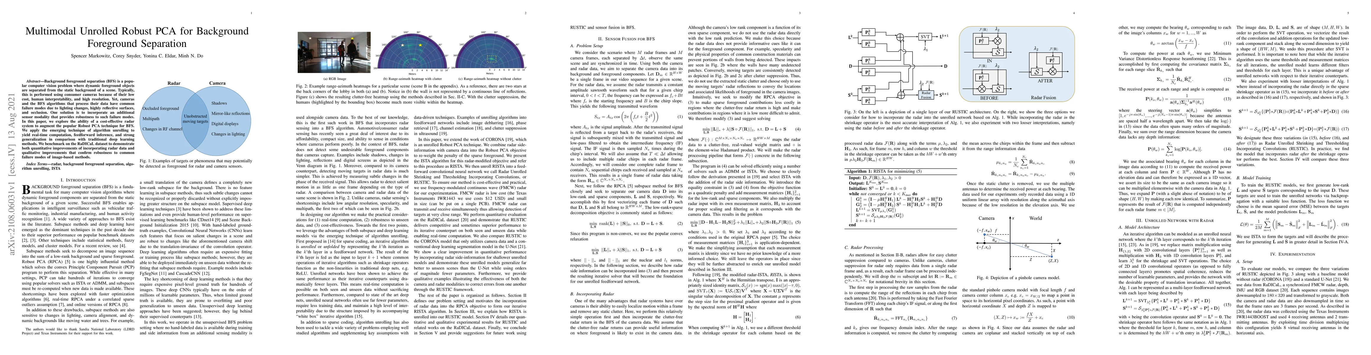 This paper proposes a multimodal unrolled Robust PCA method that integrates radar data to enhance background-foreground separation in computer vision, achieving real-time computation and robustness against common failure modes like lighting changes and occlusions, as demonstrated on the RaDICaL dataset.
