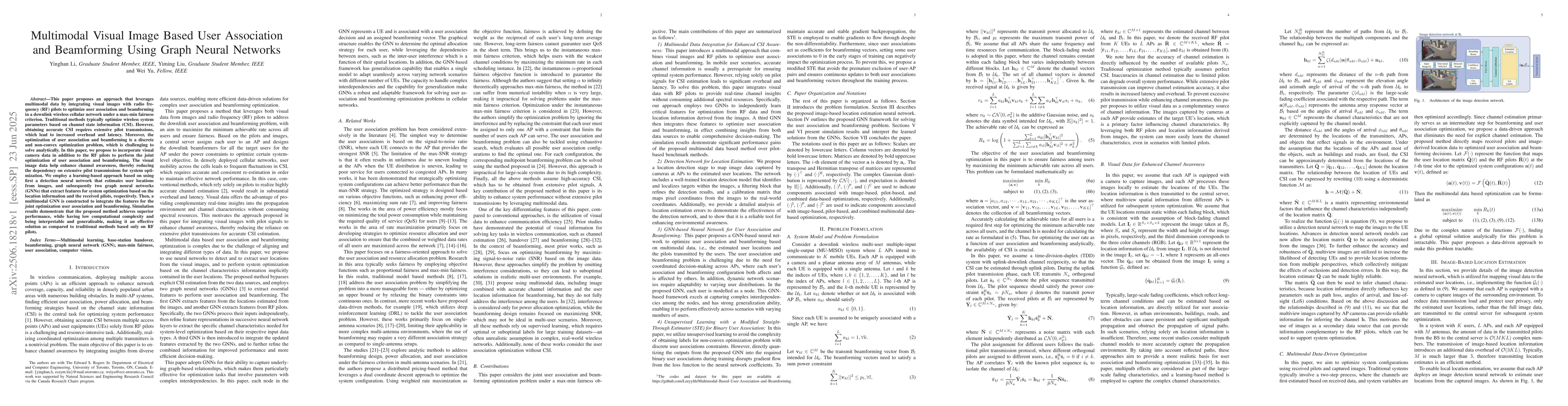 This paper proposes an approach that leverages multimodal data by integrating visual images with radio frequency (RF) pilots to optimize user association and beamforming in a downlink wireless cellular network under a max-min fairness criterion. Traditional methods typically optimize wireless system parameters based on channel state information (CSI). However, obtaining accurate CSI requires extensive pilot transmissions, which lead to increased overhead and latency. Moreover, the optimization of user association and beamforming is a discrete and non-convex optimization problem, which is challenging to solve analytically. In this paper, we propose to incorporate visual camera data in addition to the RF pilots to perform the joint optimization of user association and beamforming. The visual image data helps enhance channel awareness, thereby reducing the dependency on extensive pilot transmissions for system optimization. We employ a learning-based approach based on using first a detection neural network that estimates user locations from images, and subsequently two graph neural networks (GNNs) that extract features for system optimization based on the location information and the received pilots, respectively. Then, a multimodal GNN is constructed to integrate the features for the joint optimization user association and beamforming. Simulation results demonstrate that the proposed method achieves superior performance, while having low computational complexity and being interpretable and generalizable, making it an effective solution as compared to traditional methods based only on RF pilots.
