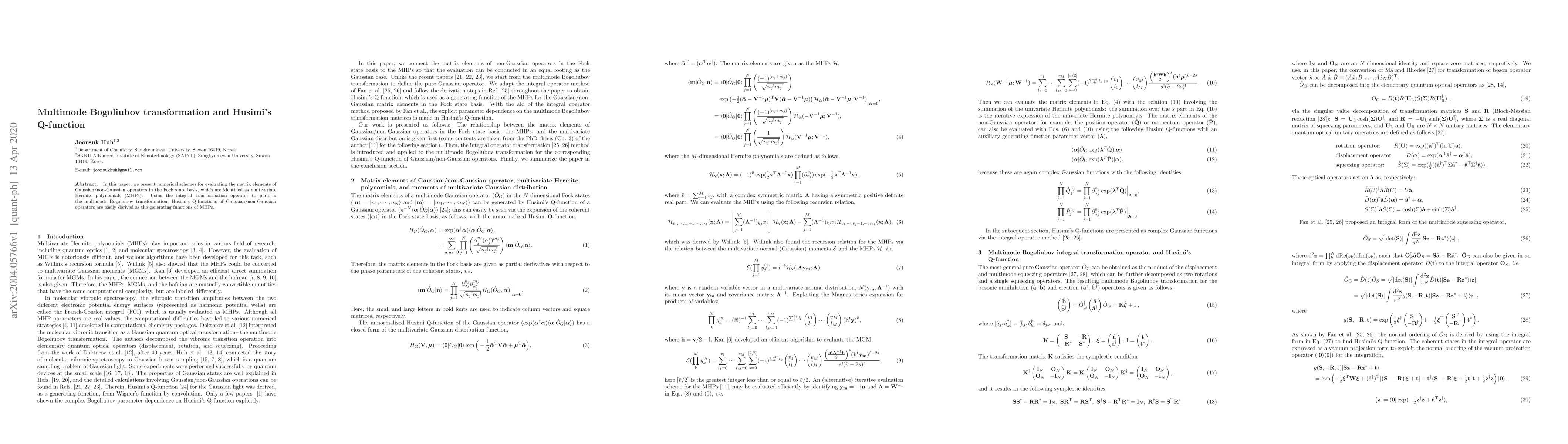 In this paper, we present numerical schemes for evaluating the matrix elements of Gaussian/non-Gaussian operators in the Fock state basis, which are identified as multivariate Hermite polynomials (MHPs). Using the integral transformation operator to perform the multimode Bogoliubov transformation, Husimi's Q-functions of Gaussian/non-Gaussian operators are easily derived as the generating functions of MHPs.