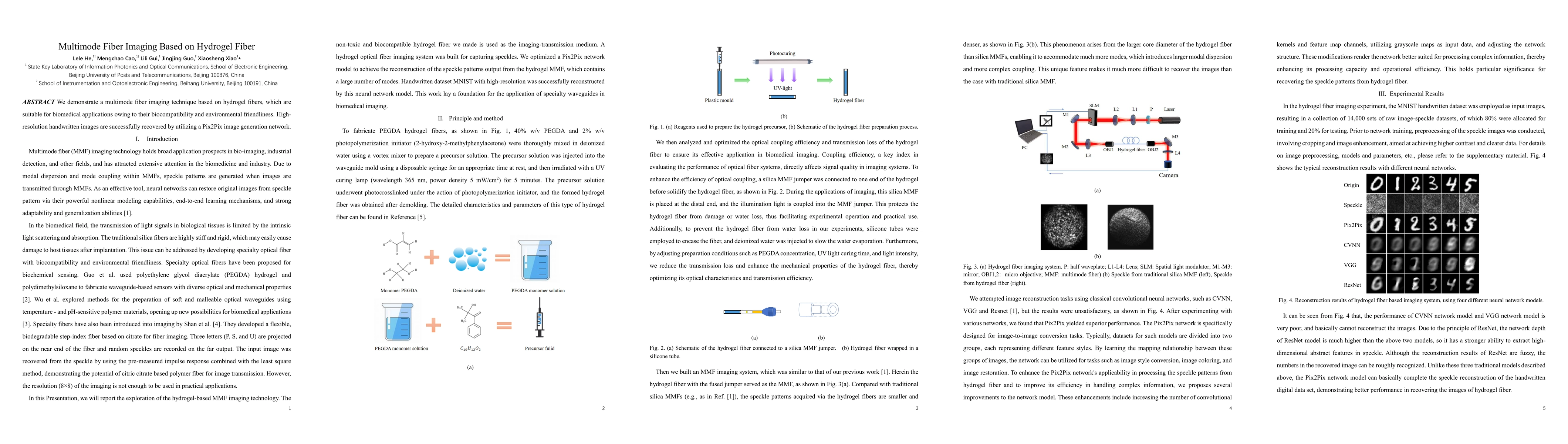 This work lays the groundwork for applying hydrogel fibers in biomedical imaging, offering a promising alternative to traditional silica fibers due to their biocompatibility and environmental friendliness.