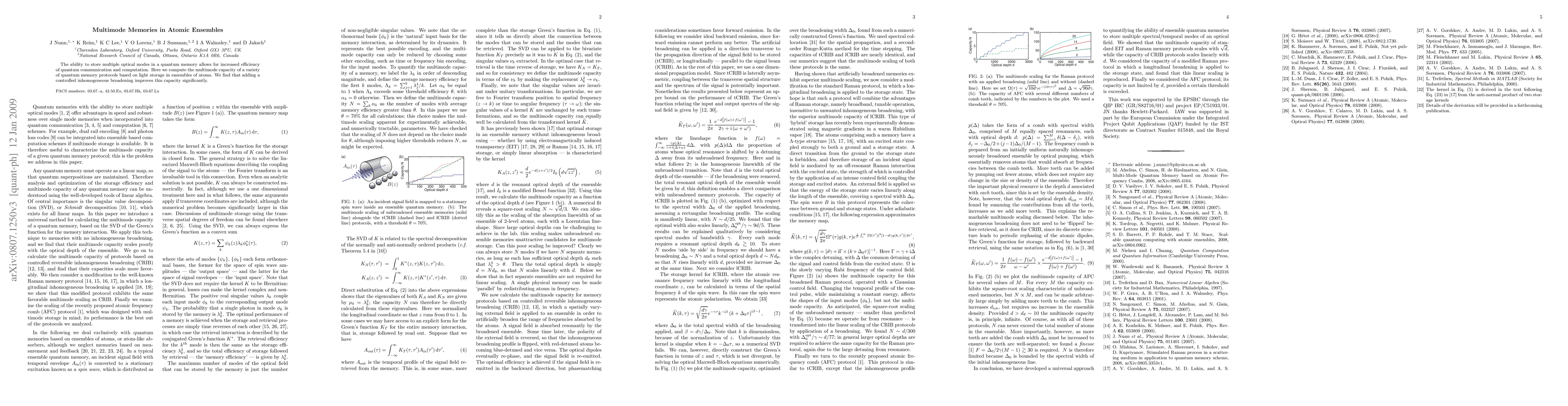 This paper investigates the multimode capacity of quantum memory protocols using atomic ensembles, demonstrating that controlled inhomogeneous broadening enhances the efficiency of quantum communication and computation.
