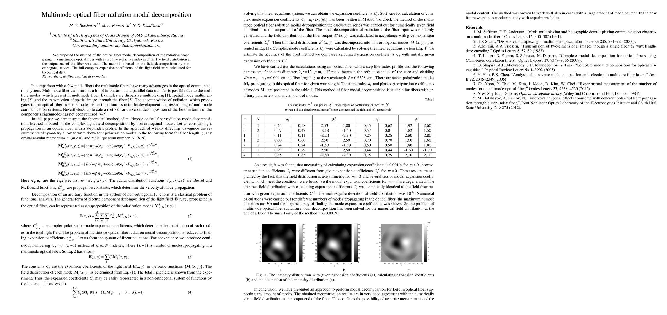 The research methodology used was based on complex light field decomposition by non-orthogonal modes.