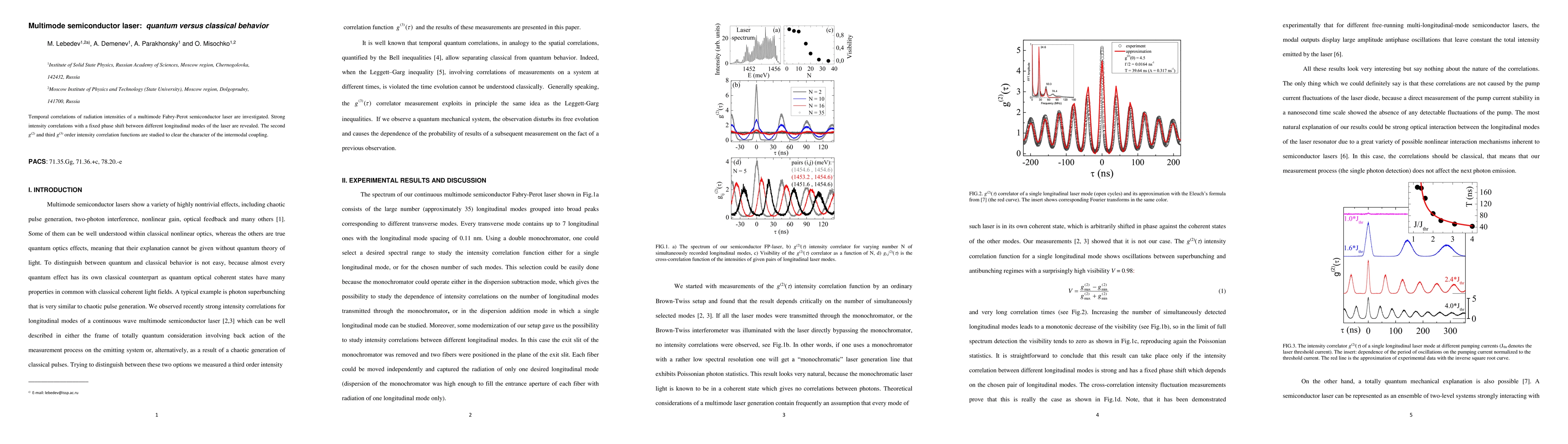 This paper investigates temporal intensity correlations in a multimode semiconductor laser, revealing strong intensity correlations with fixed phase shifts between modes. The study analyzes second and third-order correlation functions to determine the nature of intermodal coupling, distinguishing between quantum and classical behaviors.