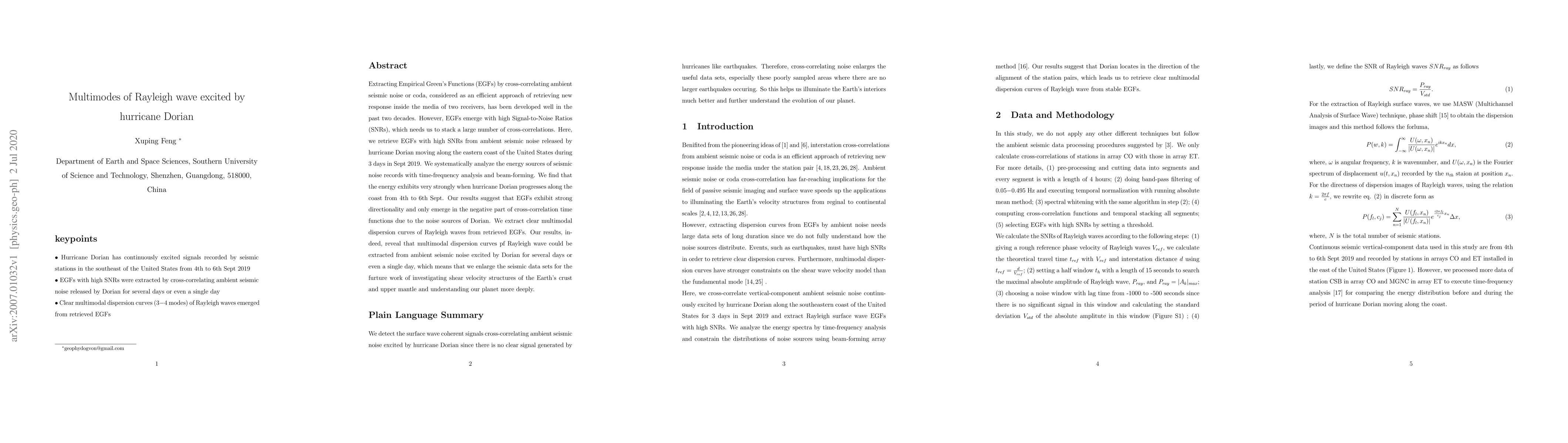 Researchers successfully extracted Rayleigh wave dispersion curves from ambient seismic noise generated by Hurricane Dorian using a new method, expanding the possible applications of seismic data analysis.