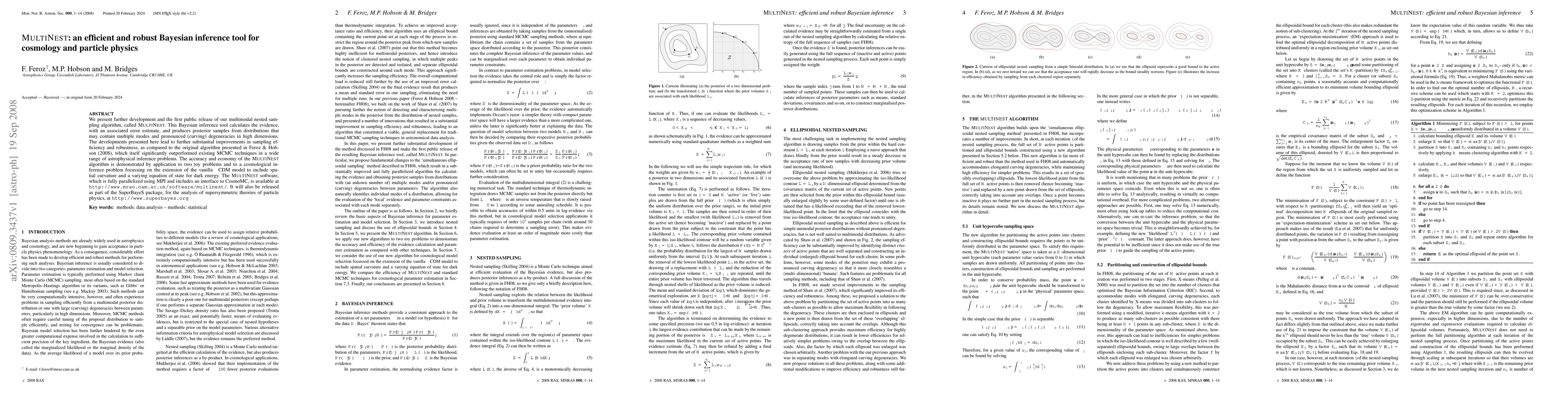 MultiNest is a newly developed multimodal nested sampling algorithm for Bayesian inference, offering improved efficiency and robustness over previous methods. It is demonstrated through cosmological and particle physics applications, and is available for public use.