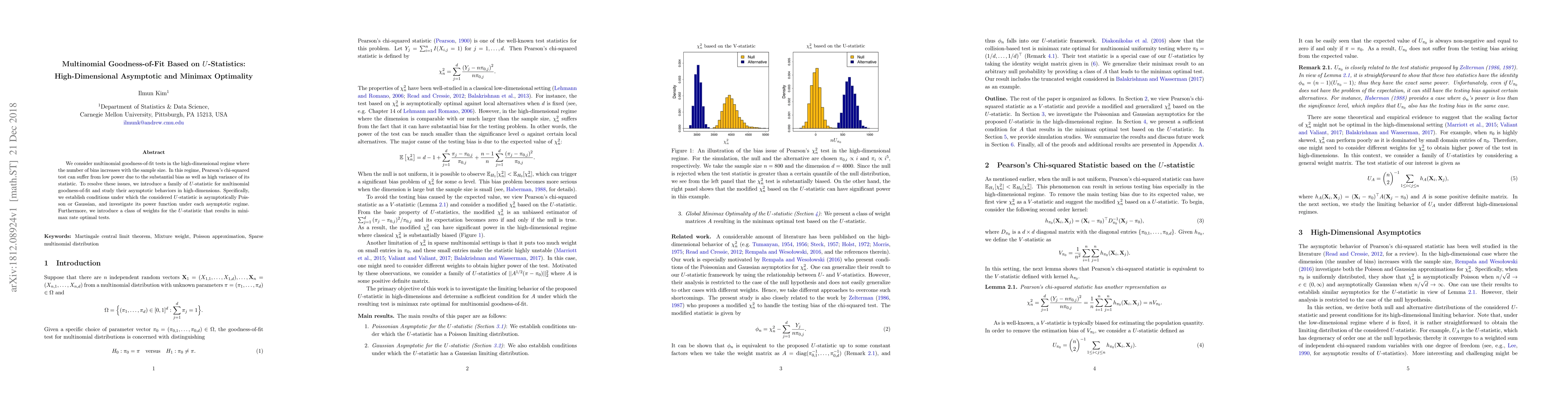 This paper develops a new family of U-statistic-based multinomial goodness-of-fit tests for high-dimensional data, addressing the low power of Pearson's chi-squared test. It establishes the asymptotic behaviors of these U-statistics and introduces optimal weights to achieve minimax rate optimal test performance.