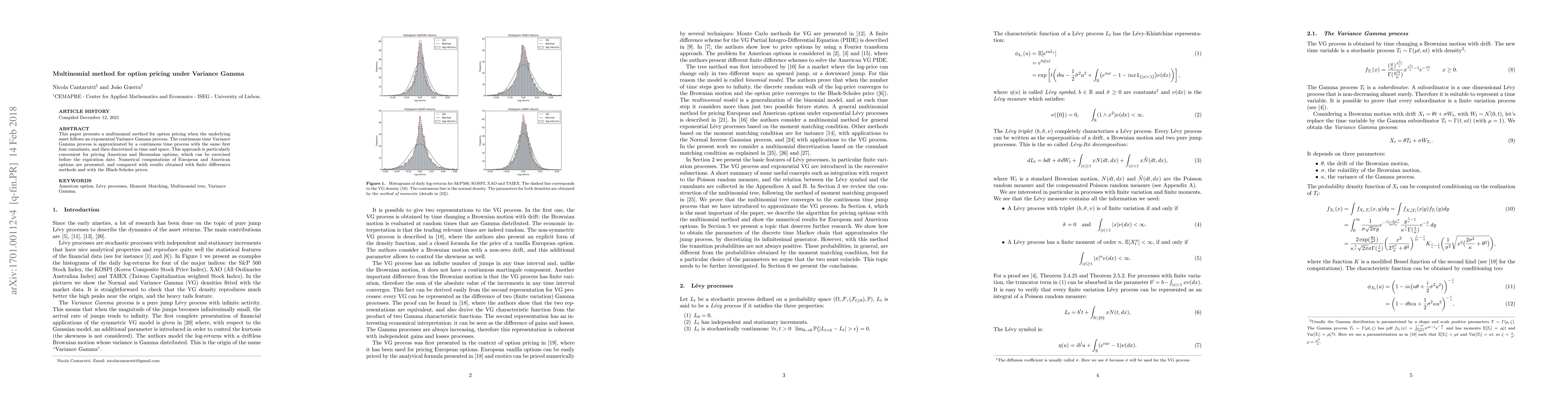 This paper introduces a multinomial method for option pricing based on the Variance Gamma process, approximating it with a discrete Markov chain. The method is effective for pricing American and Bermudan options and is compared with finite differences and Black Scholes models.