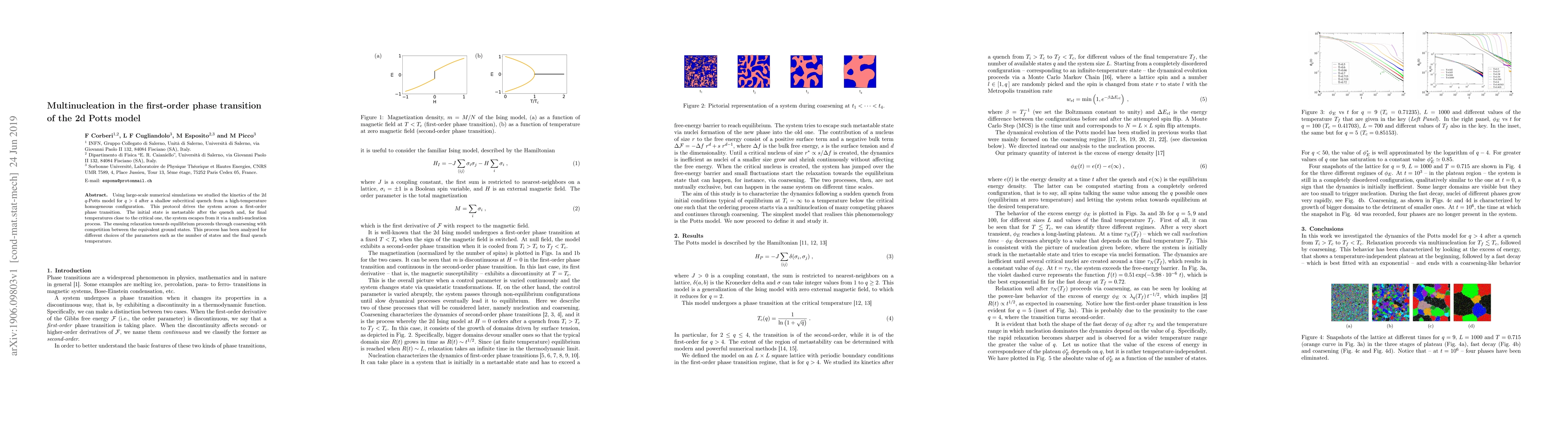 A study on a 2D model with multiple states used large-scale numerical simulations to analyze the process of phase transition after a quench from high temperature, showing a multi-nucleation process that coarsens into equilibrium.