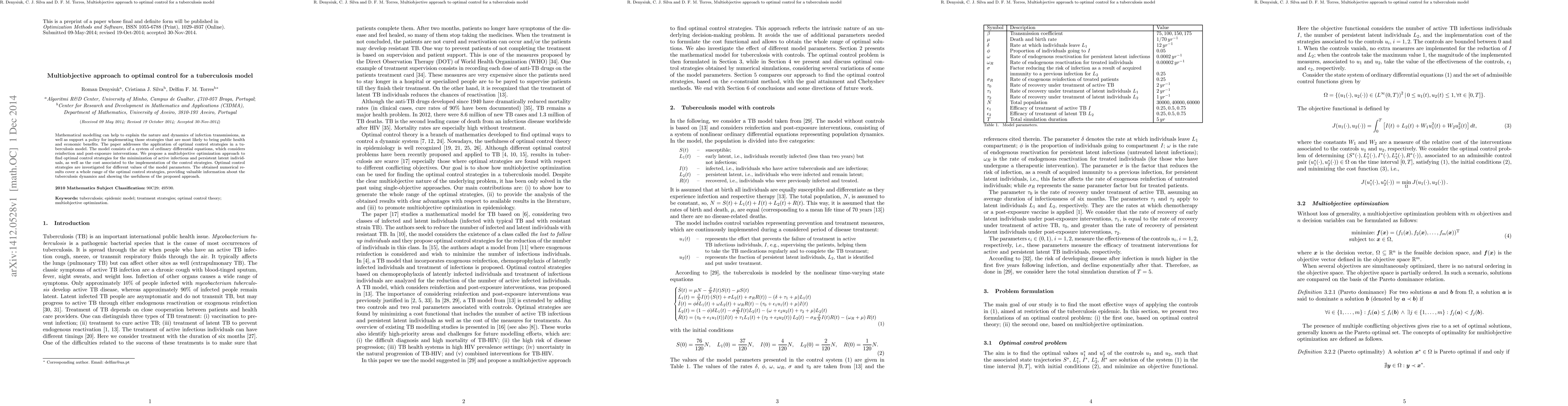 This paper proposes a multiobjective optimization approach to determine optimal control strategies for a tuberculosis model, aiming to minimize active infections, latent cases, and control costs. The results provide insights into tuberculosis dynamics and demonstrate the effectiveness of the proposed method.
