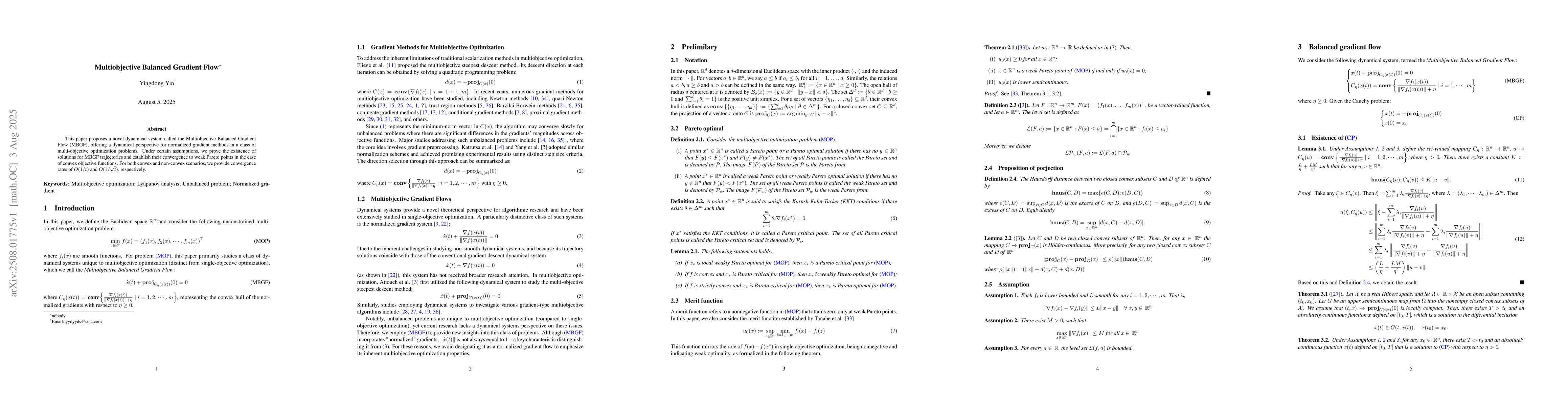 This paper proposes a novel dynamical system called the Multiobjective Balanced Gradient Flow (MBGF), offering a dynamical perspective for normalized gradient methods in a class of multi-objective optimization problems. Under certain assumptions, we prove the existence of solutions for MBGF trajectories and establish their convergence to weak Pareto points in the case of convex objective functions. For both convex and non-convex scenarios, we provide convergence rates of $O(1/t)$ and $O(1/\sqrt{t})$, respectively.
