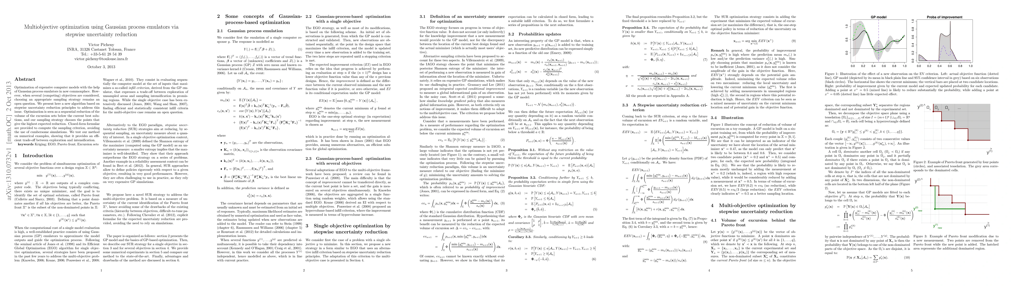 This paper introduces a new algorithm for multiobjective optimization using Gaussian process emulators, based on stepwise uncertainty reduction. The proposed method sequentially reduces the volume of excursion sets below current best solutions, selecting points that maximize expected reduction, with closed-form formulae for the sampling criterion.