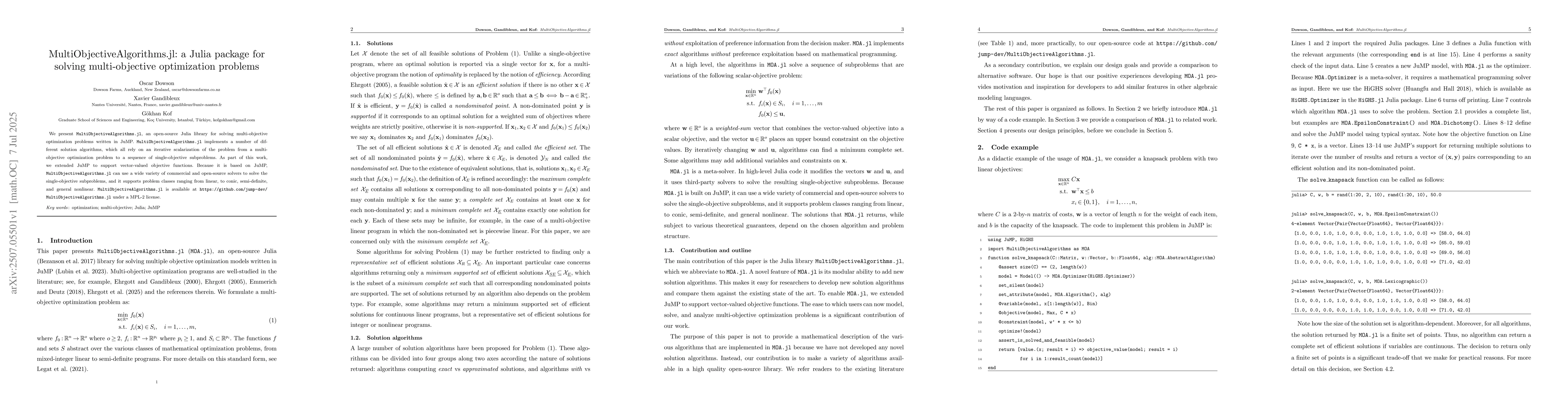 The main technical contribution is the modular design of MultiObjectiveAlgorithms.jl, which simplifies writing new algorithms and makes it easy to switch between them, all while leveraging JuMP's capabilities to handle the complexity of single-objective subproblems.