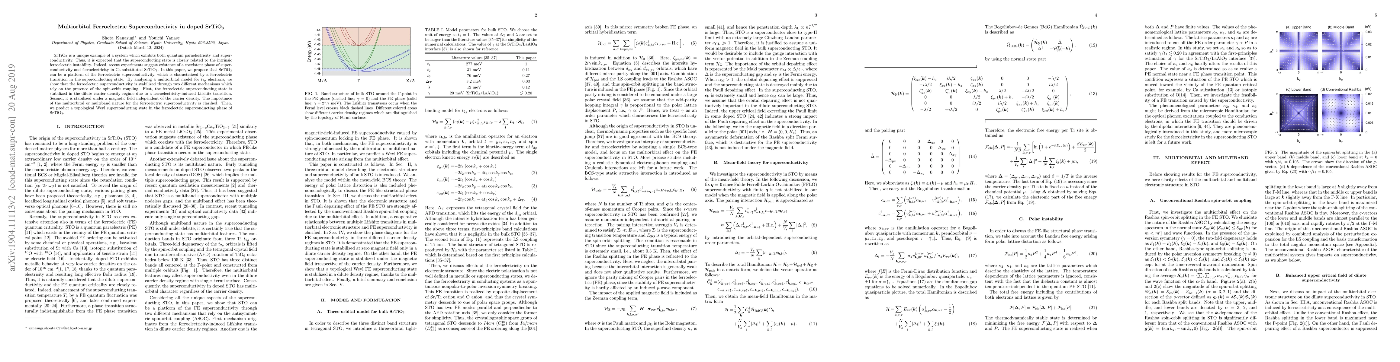 SrTiO$_3$ is a unique example of a system which exhibits both quantum paraelectricity and superconductivity. Thus, it is expected that the superconducting state is closely related to the intrinsic ferroelectric instability. Indeed, recent experiments suggest existence of a coexistent phase of superconductivity and ferroelectricity in Ca-substituted SrTiO$_3$. In this paper, we propose that SrTiO$_3$ can be a platform of the ferroelectric superconductivity, which is characterized by a ferroelectric transition in the superconducting state. By analyzing a multiorbital model for $t_{2g}$ electrons, we show that the ferroelectric superconductivity is stabilized through two different mechanisms which rely on the presence of the spin-orbit coupling. First, the ferroelectric superconducting state is stabilized in the dilute carrier density regime due to a ferroelectricity-induced Lifshitz transition. Second, it is stabilized under a magnetic field independent of the carrier density. The importance of the multiorbital or multiband nature for the ferroelectric superconductivity is clarified. Then, we predict a topological Weyl superconducting state in the ferroelectric superconducting phase of SrTiO$_3$.