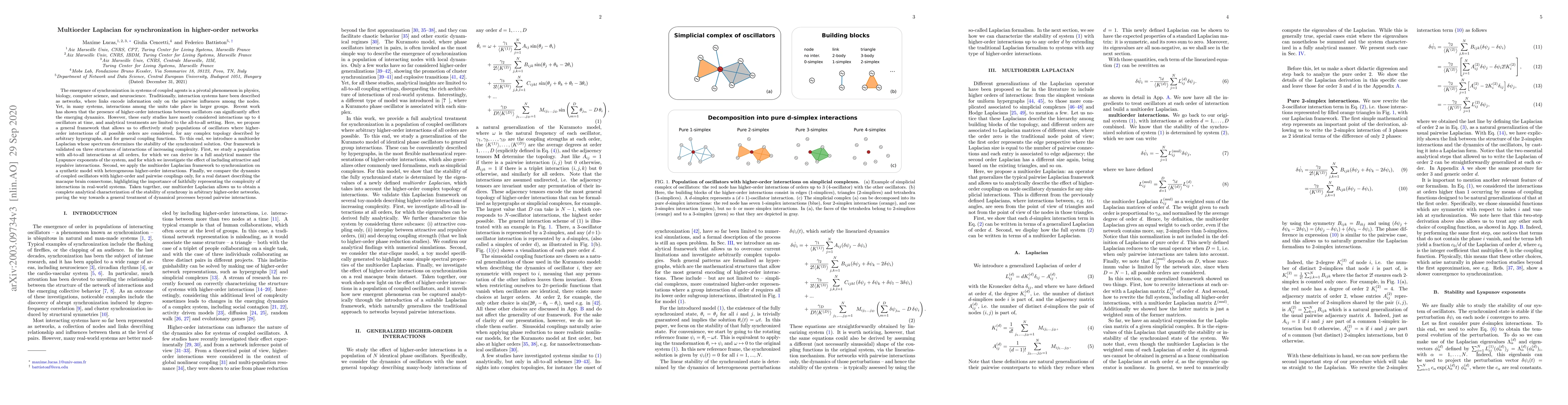 Traditionally, interaction systems have been described as networks, where links encode information on the pairwise influences among the nodes. Yet, in many systems, interactions take place in larger groups. Recent work has shown that higher-order interactions between oscillators can significantly affect synchronization. However, these early studies have mostly considered interactions up to 4 oscillators at time, and analytical treatments are limited to the all-to-all setting. Here, we propose a general framework that allows us to effectively study populations of oscillators where higher-order interactions of all possible orders are considered, for any complex topology described by arbitrary hypergraphs, and for general coupling functions. To this scope, we introduce a multi-order Laplacian whose spectrum determines the stability of the synchronized solution. Our framework is validated on three structures of interactions of increasing complexity. First, we study a population with all-to-all interactions at all orders, for which we can derive in a full analytical manner the Lyapunov exponents of the system, and for which we investigate the effect of including attractive and repulsive interactions. Second, we apply the multi-order Laplacian framework to synchronization on a synthetic model with heterogeneous higher-order interactions. Finally, we compare the dynamics of coupled oscillators with higher-order and pairwise couplings only, for a real dataset describing the macaque brain connectome, highlighting the importance of faithfully representing the complexity of interactions in real-world systems. Taken together, our multi-order Laplacian allows us to obtain a complete analytical characterization of the stability of synchrony in arbitrary higher-order networks, paving the way towards a general treatment of dynamical processes beyond pairwise interactions.