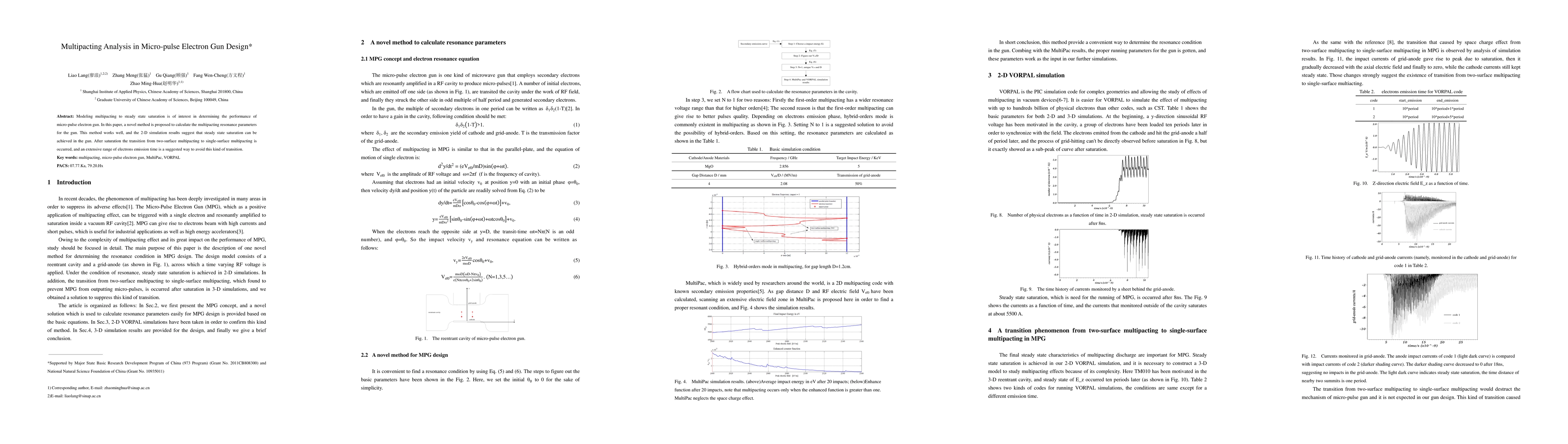 A novel method is proposed to calculate multipacting resonance parameters for micro-pulse electron guns, allowing for steady-state saturation and avoiding transitions from two-surface to single-surface multipacting.