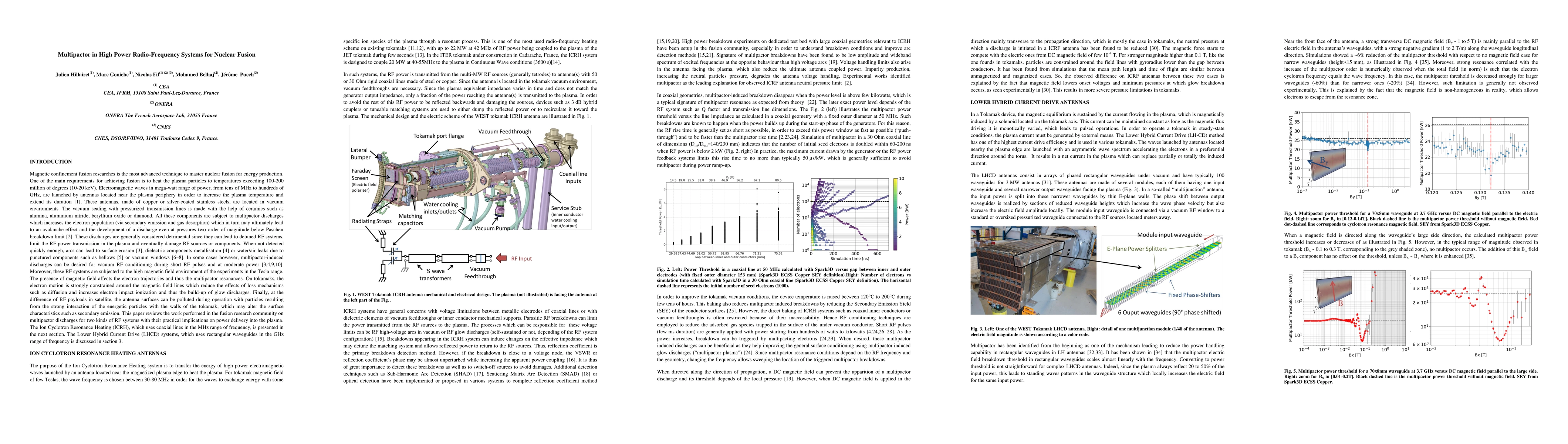 Magnetic confinement fusion researches are an approach to demonstrate the feasibility of nuclear fusion power for energy production. In these experiments, mega-watt range power Radio-Frequency waves, from tens of MHz to hundreds of GHz, are injected into magnetically confined plasmas in order to increase its temperature and to extend its duration. These RF systems are subjected to the magnetic field environment of the experiments, ranging from few tenth of Tesla to Tesla, and various orientations depending of their locations. As these RF systems made of copper, silver or ceramics are located in vacuum environments, they are subject to multipactor discharges. These discharges are generally considered detrimental since they can lead to detuned RF systems, limit the RF power transmission in the plasma and eventually damage RF sources or components. In some case, especially in the MHz range of frequency, multipactor discharges can be desired for vacuum conditioning. This paper presents the various RF systems used in magnetic fusion experiments and review the work performed in the fusion research community on multipactor discharges for high power coaxial (MHz) and rectangular waveguides (GHz) transmission lines, with their practical implications on power delivery into the plasma.