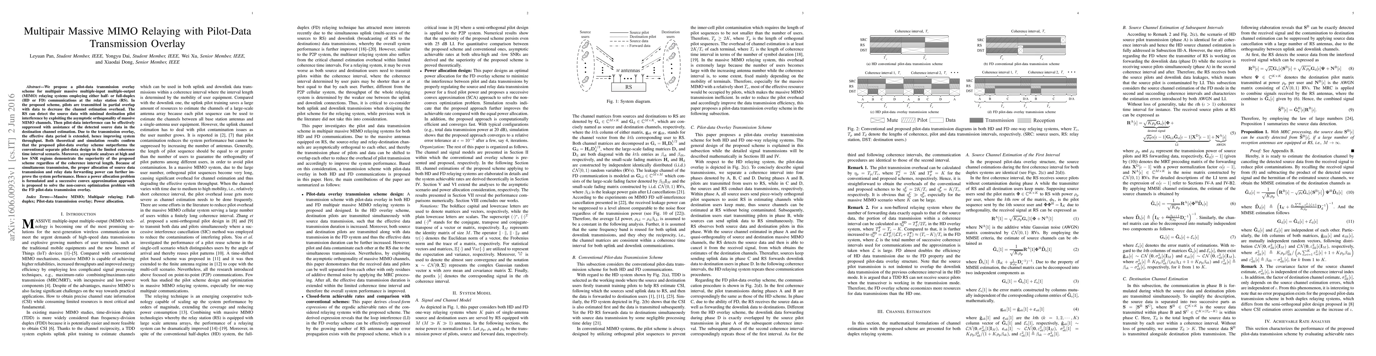 This paper proposes a pilot-data transmission overlay scheme for multipair massive MIMO relaying systems, which decreases channel estimation overhead and enhances system throughput by exploiting the asymptotic orthogonality of massive MIMO channels. The scheme outperforms conventional designs and achieves better performance through power allocation optimization.