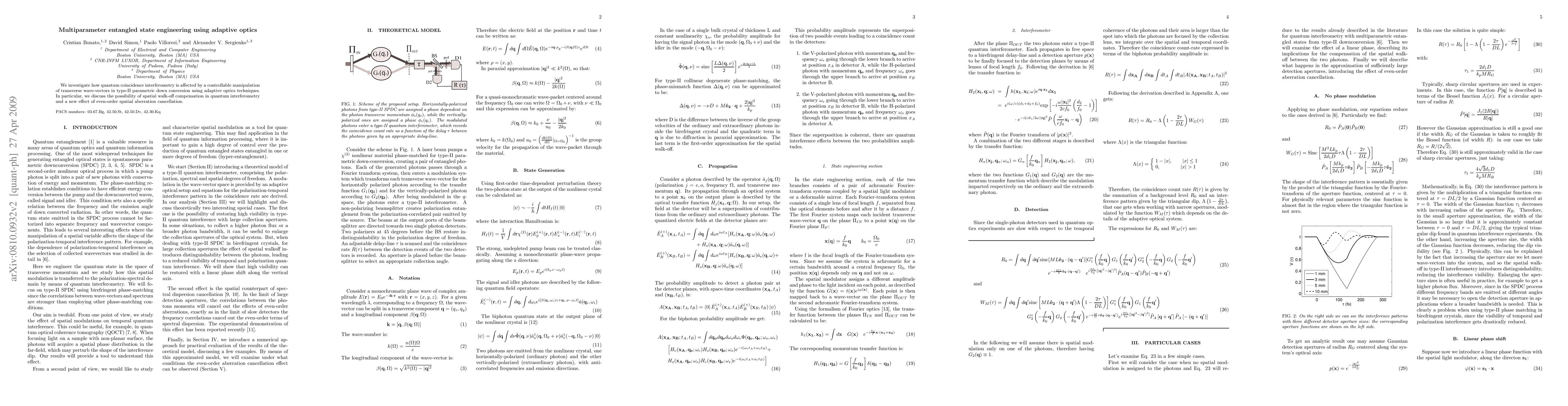 We investigate how quantum coincidence interferometry is affected by a controllable manipulation of transverse wave-vectors in type-II parametric down conversion using adaptive optics techniques. In particular, we discuss the possibility of spatial walk-off compensation in quantum interferometry and a new effect of even-order spatial aberration cancellation.