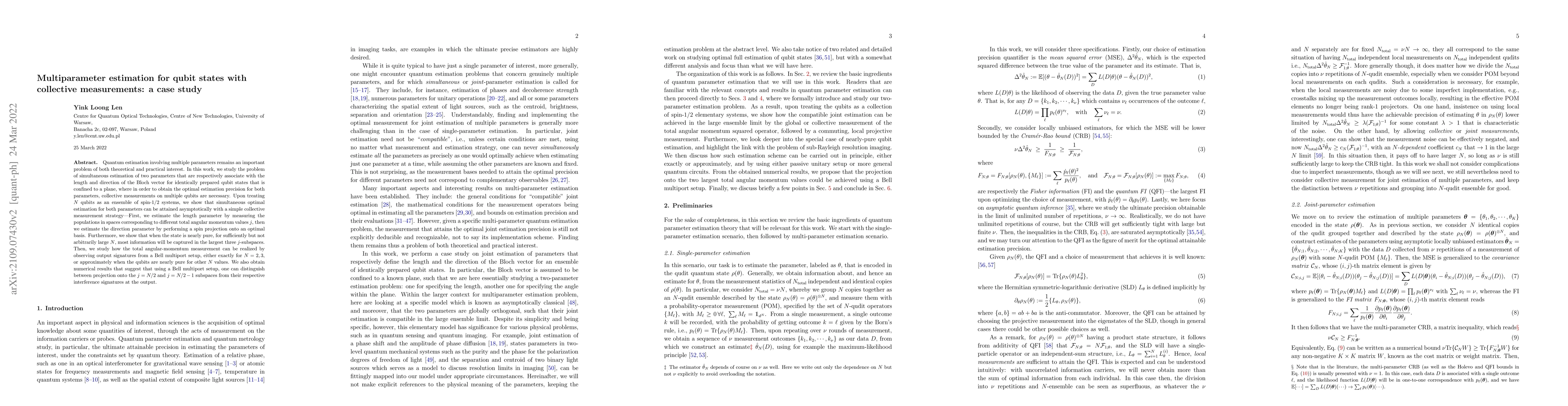 This paper investigates optimal estimation of two parameters associated with qubit states using collective measurements on multiple qubits. It proposes a strategy for simultaneous estimation by first measuring populations corresponding to different total angular momentum values and then projecting spins onto an optimal basis.