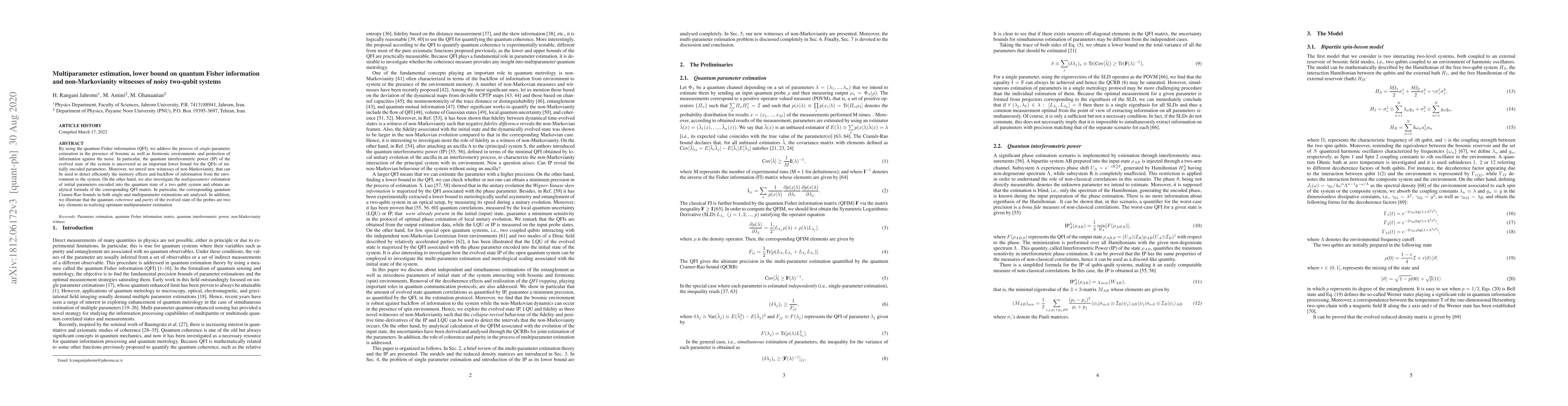 This paper explores the quantum Fisher information (QFI) for single- and multiparameter estimation in noisy two-qubit systems, revealing a lower bound via quantum interferometric power and introducing new non-Markovianity witnesses. It also derives analytical formulas for the QFI matrix and analyzes quantum Cramer-Rao bounds, emphasizing the roles of quantum coherence and purity in optimal estimation.