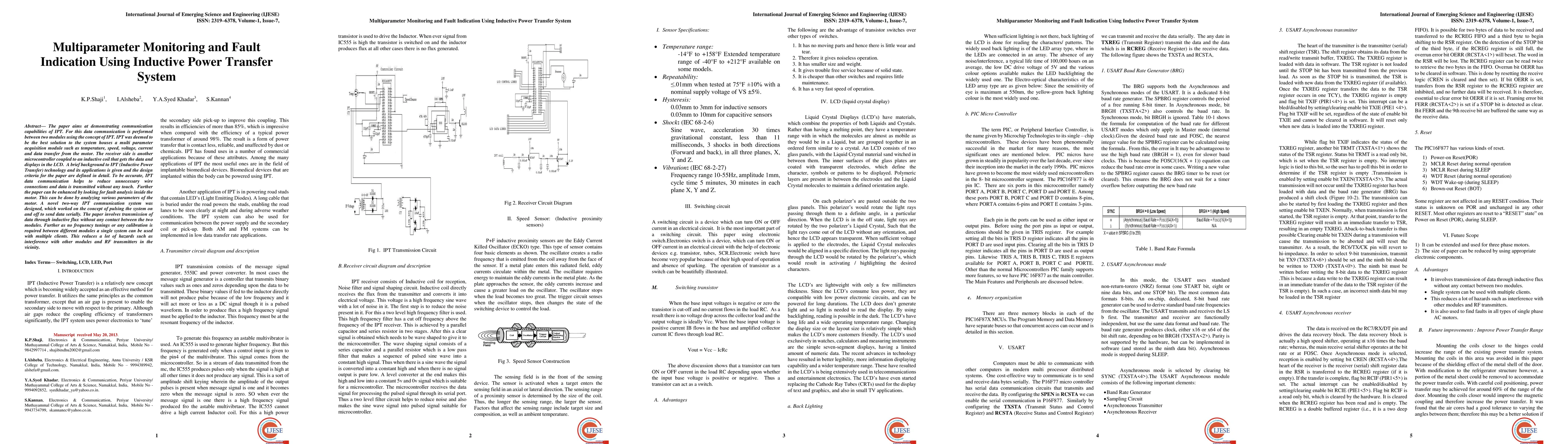 This paper presents a novel two-way inductive power transfer (IPT) communication system for multiparameter monitoring, enabling data transmission without physical connections. The system uses IPT to send serial data between modules, reducing hazards and interference, and can be applied to fault indication in motors by analyzing various parameters.