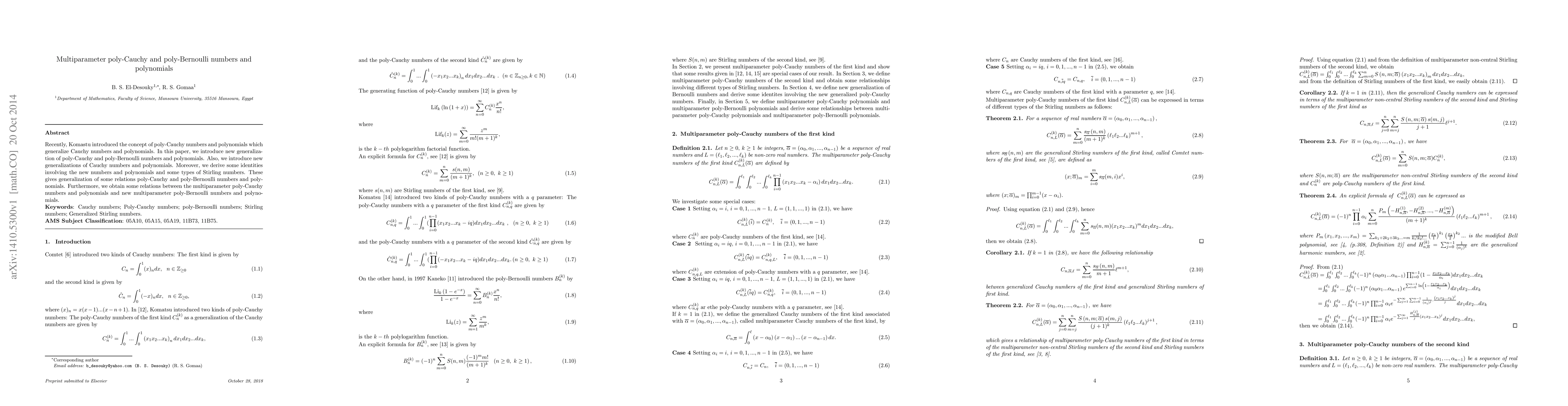 Recently, Komastu introduced the concept of poly-Cauchy numbers and polynomials which generalize Cauchy numbers and polynomials. In this paper, we introduce new generaliza- tion of poly-Cauchy and poly-Bernoulli numbers and polynomials. Also, we introduce new generalizations of Cauchy numbers and polynomials. Moreover, we derive some identities involving the new numbers and polynomials and some types of Stirling numbers. These gives generalization of some relations poly-Cauchy and poly-Bernoulli numbers and poly- nomials. Furthermore, we obtain some relations between the multiparameter poly-Cauchy numbers and polynomials and new multiparameter poly-Bernoulli numbers and polyno- mials.