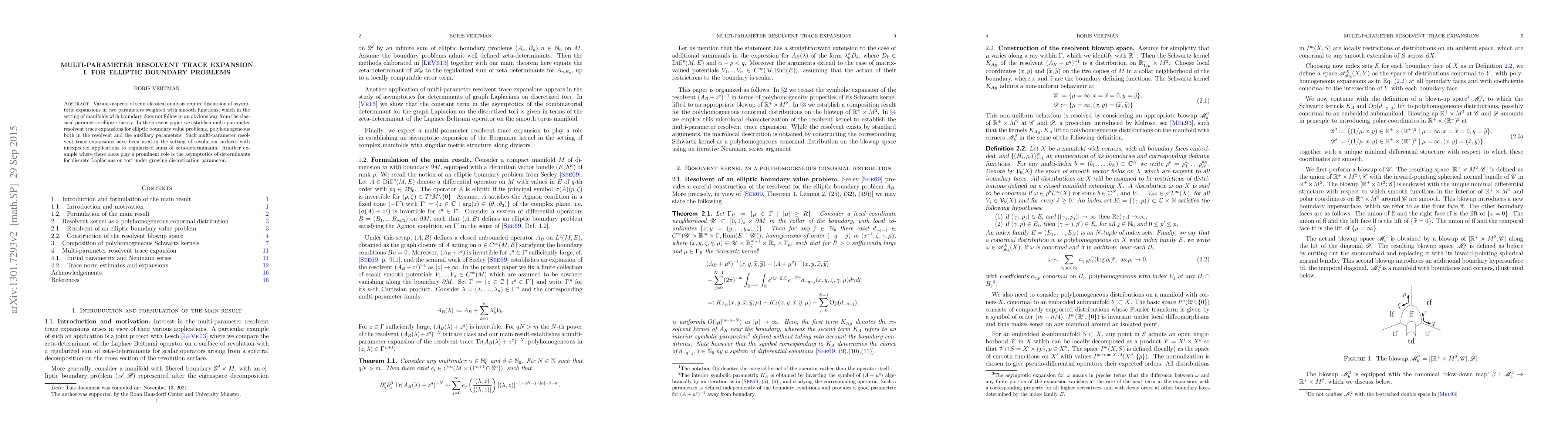 Summary: This paper develops multiparameter resolvent trace expansions for elliptic boundary problems, utilizing polyhomogeneous terms, and builds on collaborative work with Matthias Lesch to apply these expansions to regularized sums of zeta-determinants.
