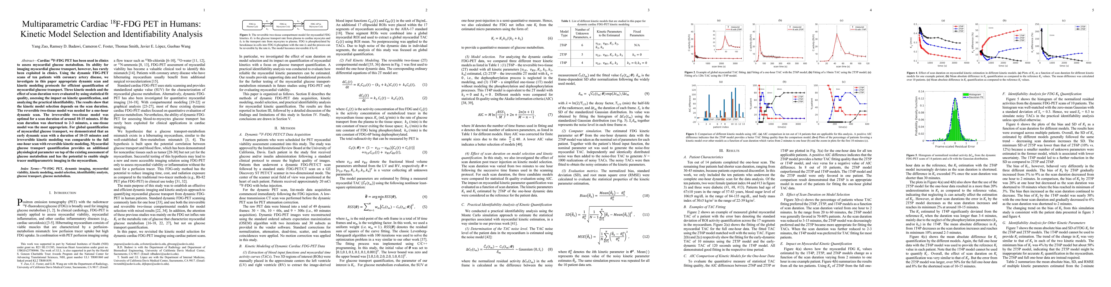 This study evaluates kinetic models for quantifying myocardial glucose transport using 18F-FDG PET scans in patients with coronary artery disease. It finds that model selection depends on scan duration, with the irreversible two-tissue model being optimal for 10-15 minute scans, and suggests that such scans provide comparable quantification to longer scans using reversible models.