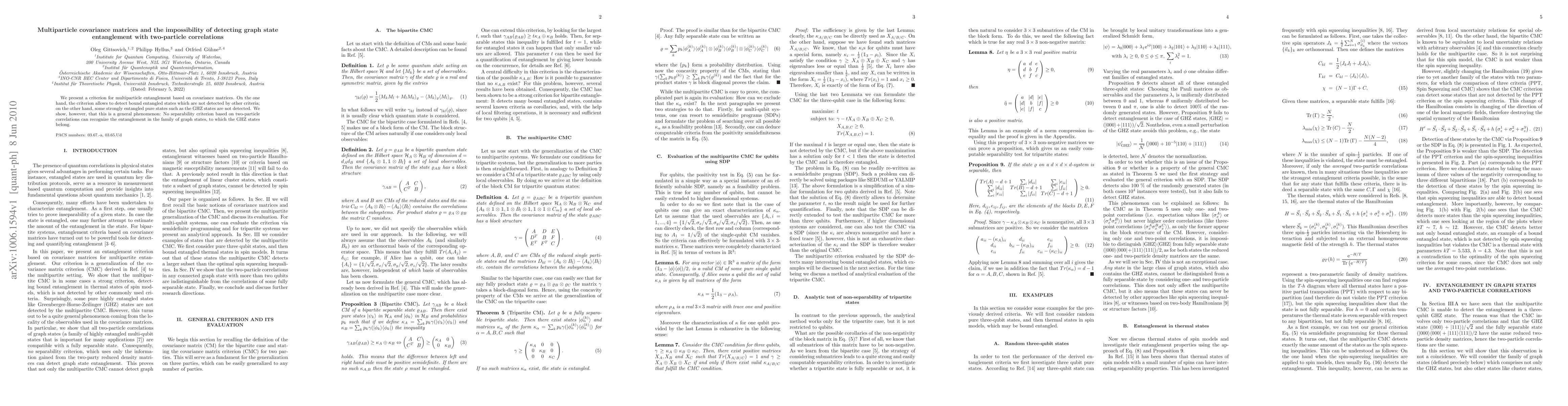 This paper introduces a criterion for multiparticle entanglement using covariance matrices, which can detect bound entangled states but fails to recognize entanglement in graph states, including GHZ states, highlighting that no separability criterion based on two-particle correlations can detect this type of entanglement.