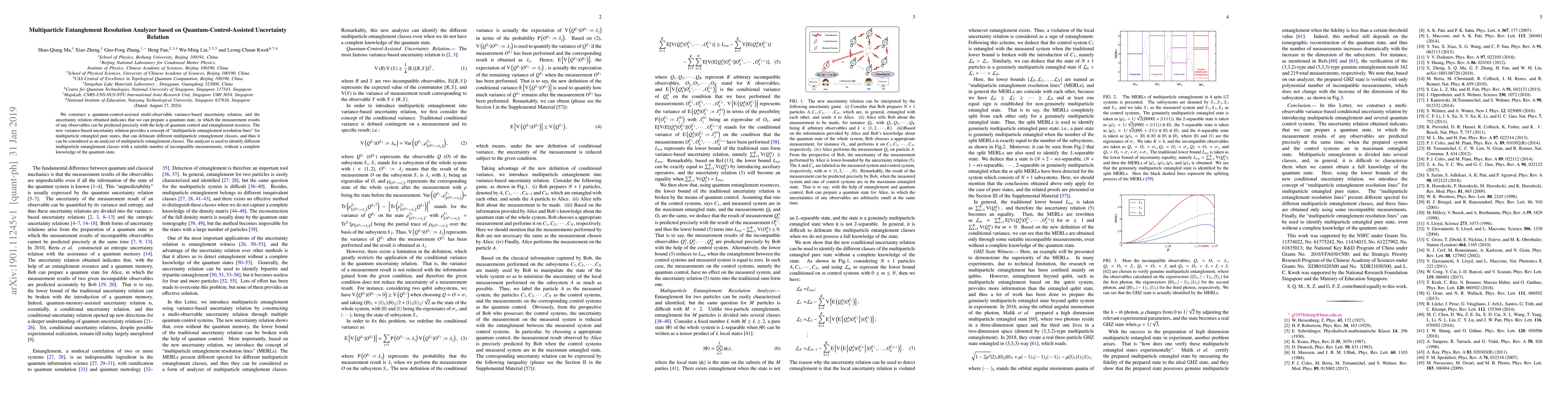 This paper introduces a quantum-control-assisted uncertainty relation to predict measurement outcomes of observables in entangled quantum states. It proposes a "multiparticle entanglement resolution analyzer" based on this relation, which can classify multiparticle entanglement classes using incompatible measurements without full state knowledge.