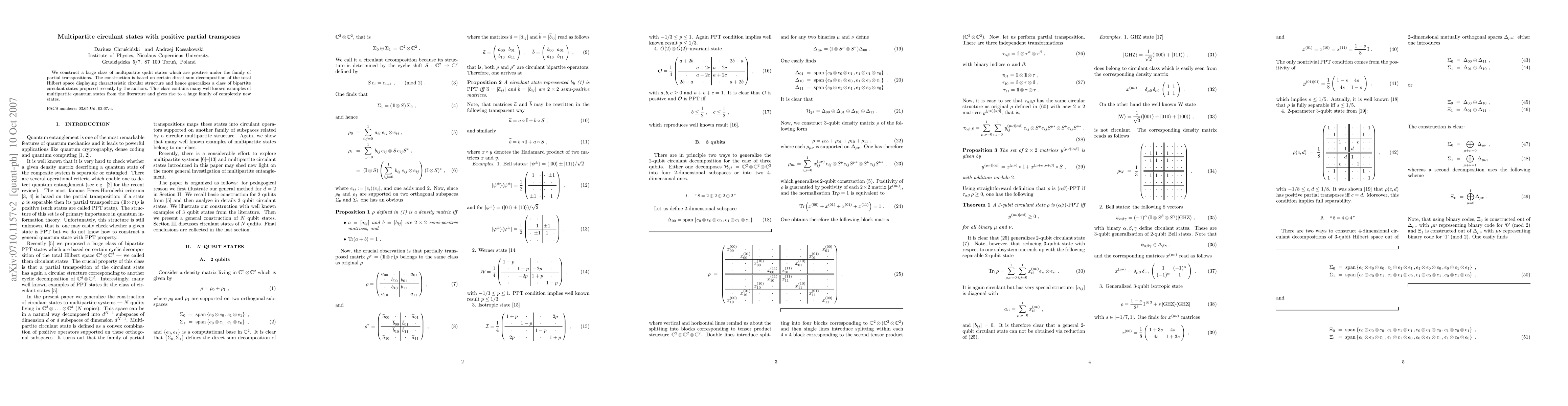 We construct a large class of multipartite qudit states which are positive under the family of partial transpositions. The construction is based on certain direct sum decomposition of the total Hilbert space displaying characteristic circular structure and hence generalizes a class of bipartite circulant states proposed recently by the authors. This class contains many well known examples of multipartite quantum states from the literature and gives rise to a huge family of completely new states.