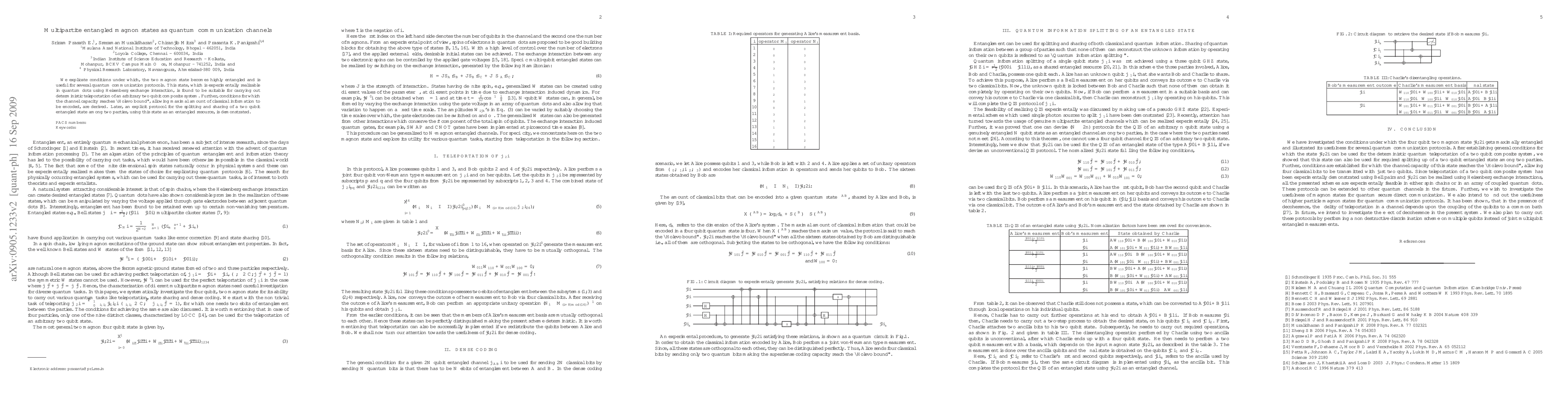 We explicate conditions under which, the two magnon state becomes highly entangled and is useful for several quantum communication protocols. This state, which is experimentally realizable in quantum dots using Heisenberg exchange interaction, is found to be suitable for carrying out deterministic teleportation of an arbitrary two qubit composite system. Further, conditions for which the channel capacity reaches "Holevo bound", allowing maximal amount of classical information to be encoded, are derived. Later, an explicit protocol for the splitting and sharing of a two qubit entangled state among two parties, using this state as an entangled resource, is demonstrated.