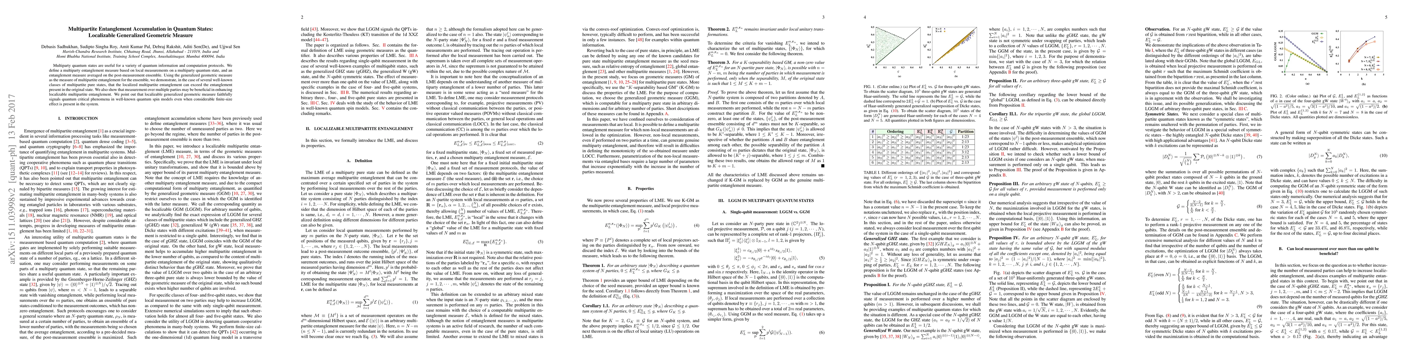 This paper proposes a generalized geometric measure to quantify multipartite entanglement in quantum states, showing that local measurements can sometimes enhance this entanglement. It demonstrates that localized entanglement can exceed that in the original state and highlights its effectiveness in signaling quantum critical phenomena.
