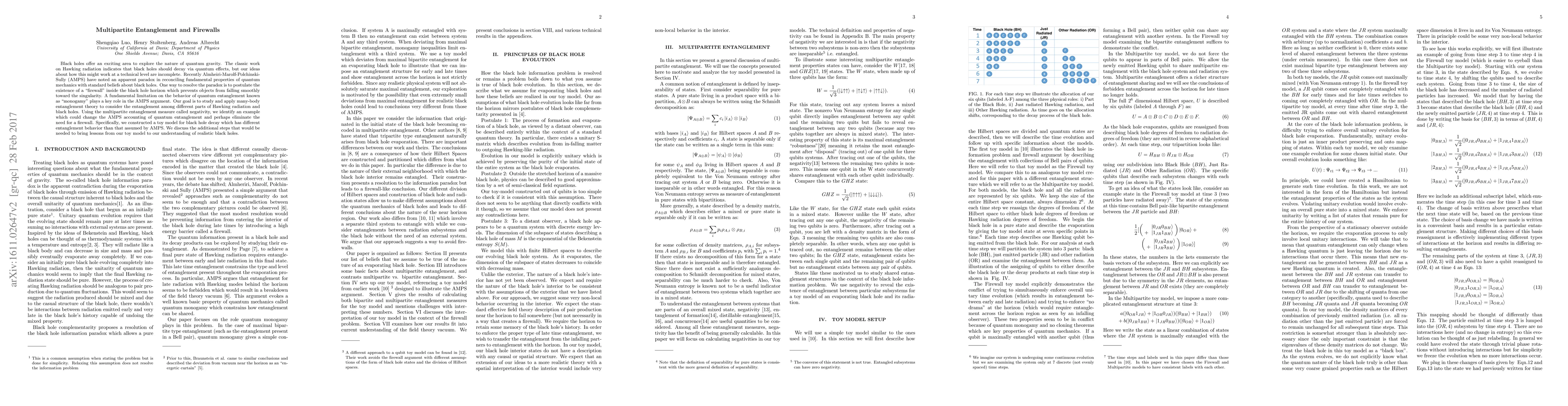 Black holes offer an exciting area to explore the nature of quantum gravity. The classic work on Hawking radiation indicates that black holes should decay via quantum effects, but our ideas about how this might work at a technical level are incomplete. Recently Almheiri-Marolf-Polchinski-Sully (AMPS) have noted an apparent paradox in reconciling fundamental properties of quantum mechanics with standard beliefs about black holes. One way to resolve the paradox is to postulate the existence of a "firewall" inside the black hole horizon which prevents objects from falling smoothly toward the singularity. A fundamental limitation on the behavior of quantum entanglement known as "monogamy" plays a key role in the AMPS argument. Our goal is to study and apply many-body entanglement theory to consider the entanglement among different parts of Hawking radiation and black holes. Using the multipartite entanglement measure called negativity, we identify an example which could change the AMPS accounting of quantum entanglement and perhaps eliminate the need for a firewall. Specifically, we constructed a toy model for black hole decay which has different entanglement behavior than that assumed by AMPS. We discuss the additional steps that would be needed to bring lessons from our toy model to our understanding of realistic black holes.