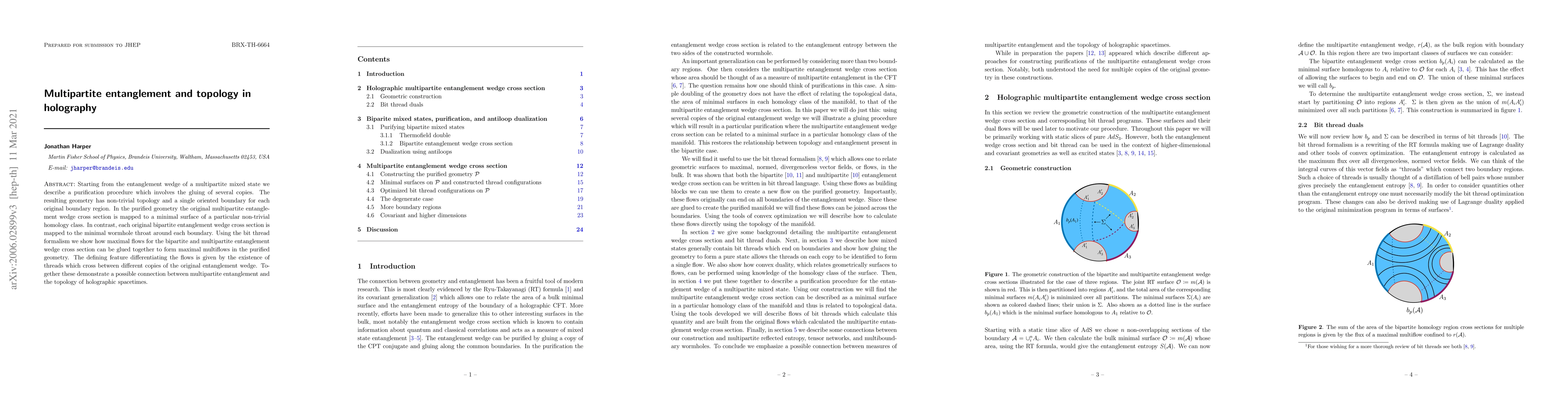Starting from the entanglement wedge of a multipartite mixed state we describe a purification procedure which involves the gluing of several copies. The resulting geometry has non-trivial topology and a single oriented boundary for each original boundary region. In the purified geometry the original multipartite entanglement wedge cross section is mapped to a minimal surface of a particular non-trivial homology class. In contrast each original bipartite entanglement wedge cross section is mapped to the minimal wormhole throat around each boundary. Using the bit thread formalism we show how maximal flows for the bipartite and multipartite entanglement wedge cross section can be glued together to form maximal multiflows in the purified geometry. The defining feature differentiating the flows is given by the existence of threads which cross between different copies of the original entanglement wedge. Together these demonstrate a possible connection between multipartite entanglement and the topology of holographic spacetimes.
