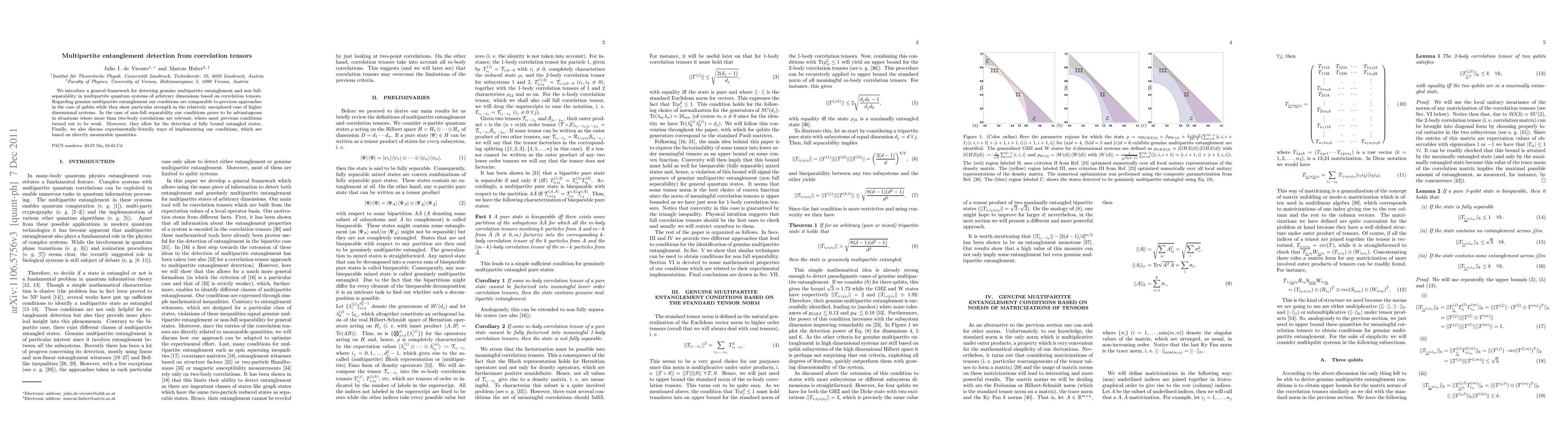 This paper presents a new framework for detecting multipartite entanglement and non-full separability in quantum systems using correlation tensors, showing strong performance especially for higher-dimensional systems and multi-body correlations. It also discusses practical implementations based on directly measurable quantities.