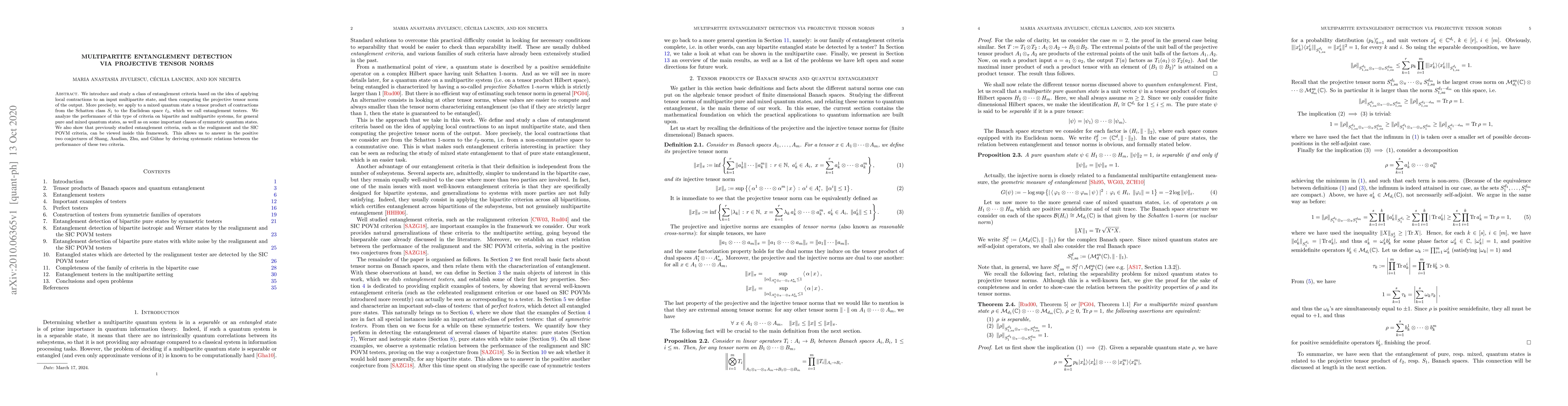 We introduce and study a class of entanglement criteria based on the idea of applying local contractions to an input multipartite state, and then computing the projective tensor norm of the output. More precisely, we apply to a mixed quantum state a tensor product of contractions from the Schatten class $S_1$ to the Euclidean space $\ell_2$, which we call entanglement testers. We analyze the performance of this type of criteria on bipartite and multipartite systems, for general pure and mixed quantum states, as well as on some important classes of symmetric quantum states. We also show that previously studied entanglement criteria, such as the realignment and the SIC POVM criteria, can be viewed inside this framework. This allows us to answer in the positive two conjectures of Shang, Asadian, Zhu, and G\"uhne by deriving systematic relations between the performance of these two criteria.