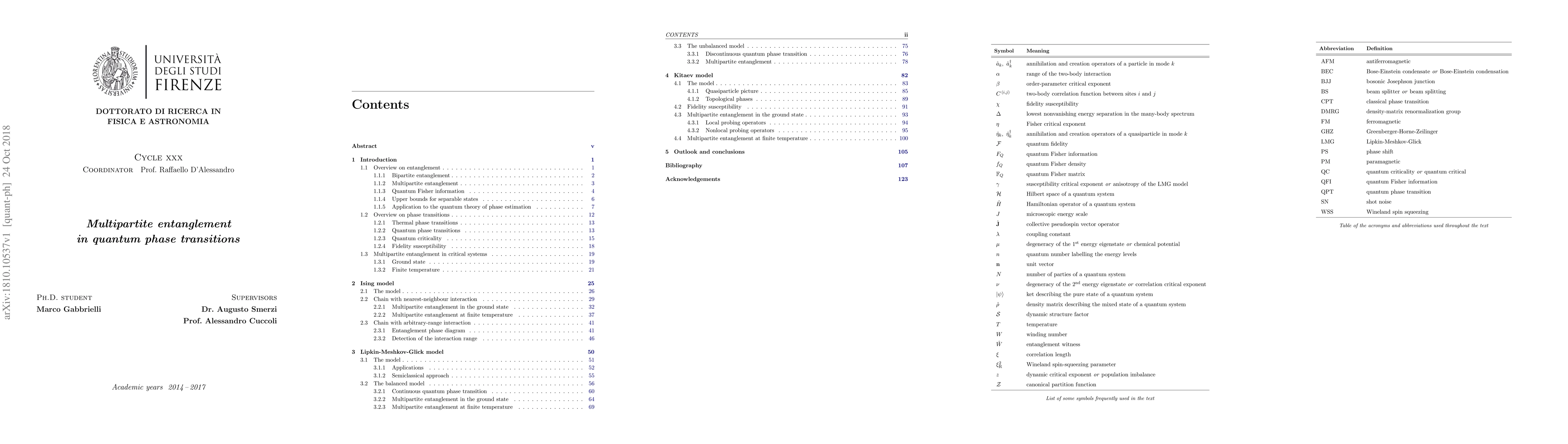 This dissertation collects results about witnessing multipartite entanglement in critical spin systems and free-fermion models both at zero and finite temperature.