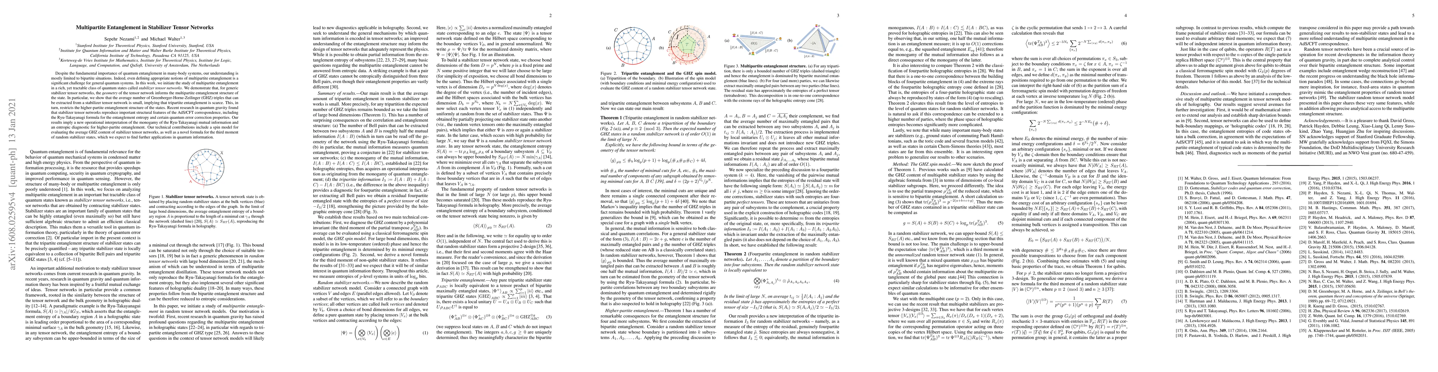 This paper investigates multipartite entanglement within stabilizer tensor networks, revealing that these networks exhibit limited tripartite entanglement. The study introduces a spin model for assessing average GHZ triple extraction and provides a new interpretation of the Ryu-Takayanagi mutual information's monogamy.