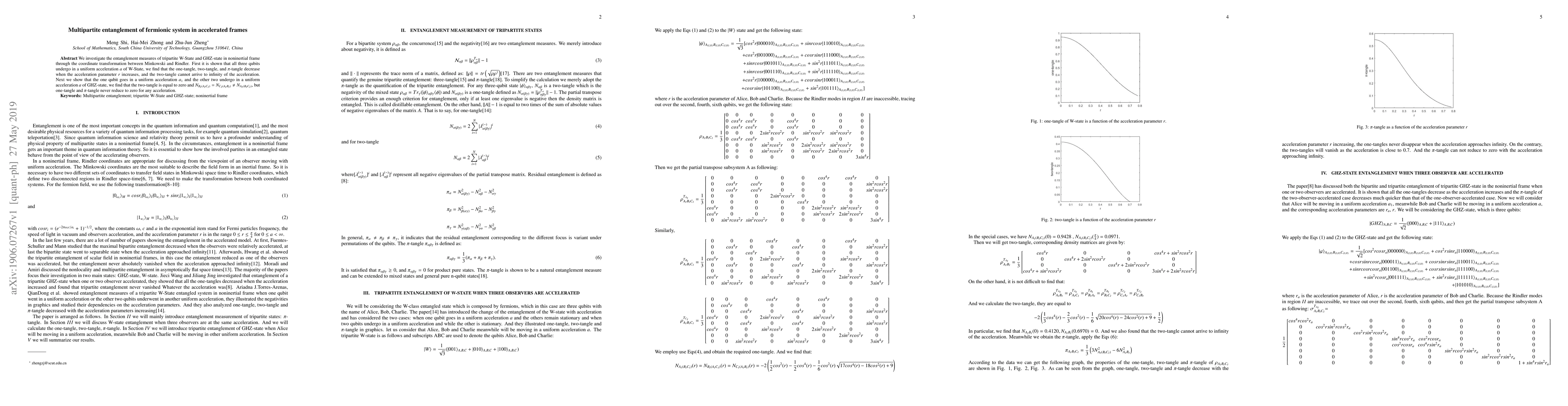 Researchers investigate entanglement of fermionic systems in accelerated frames, finding that some entanglement measures decrease with increasing acceleration, while others remain unchanged.