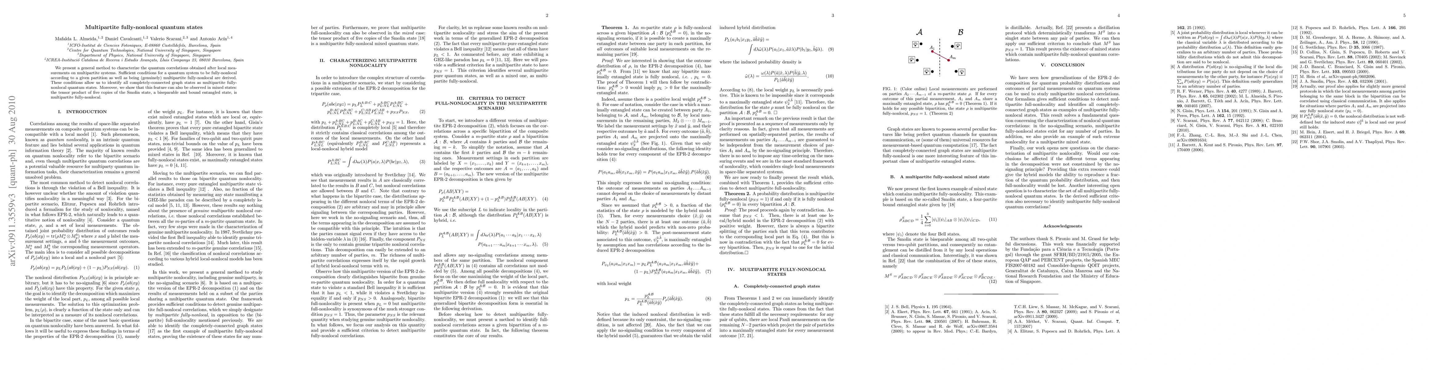 This paper develops a method to characterize quantum correlations in multipartite systems, identifying sufficient conditions for fully-nonlocal states. It demonstrates that completely-connected graph states and the tensor product of five Smolin states are examples of multipartite fully-nonlocal quantum states.