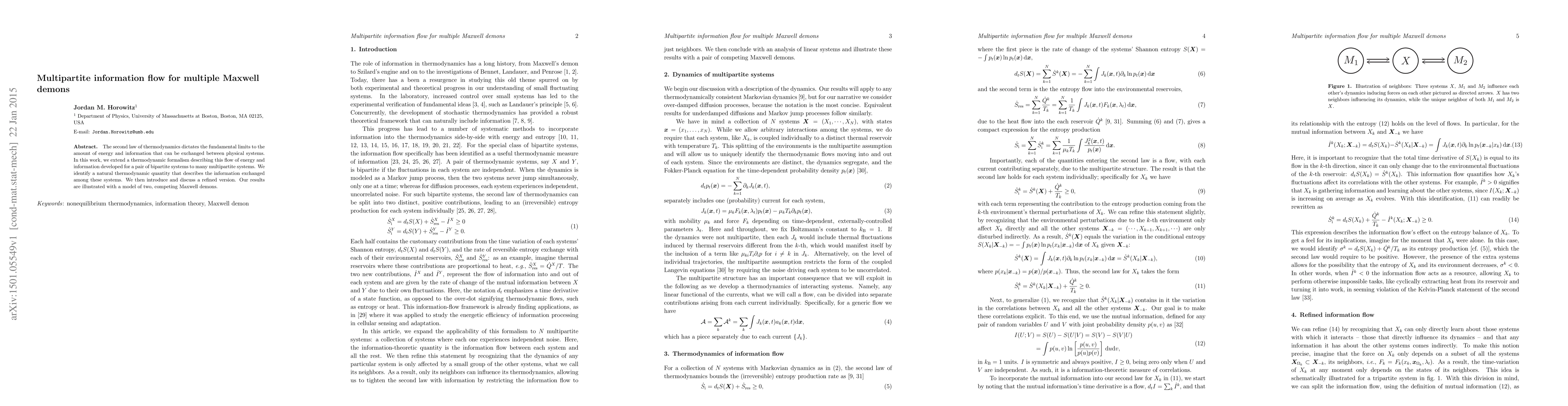 This paper extends thermodynamic formalism to describe energy and information flow in multipartite systems, identifying a new thermodynamic quantity for information exchange. It applies these findings to a model involving two competing Maxwell demons to illustrate the refined thermodynamic principles.