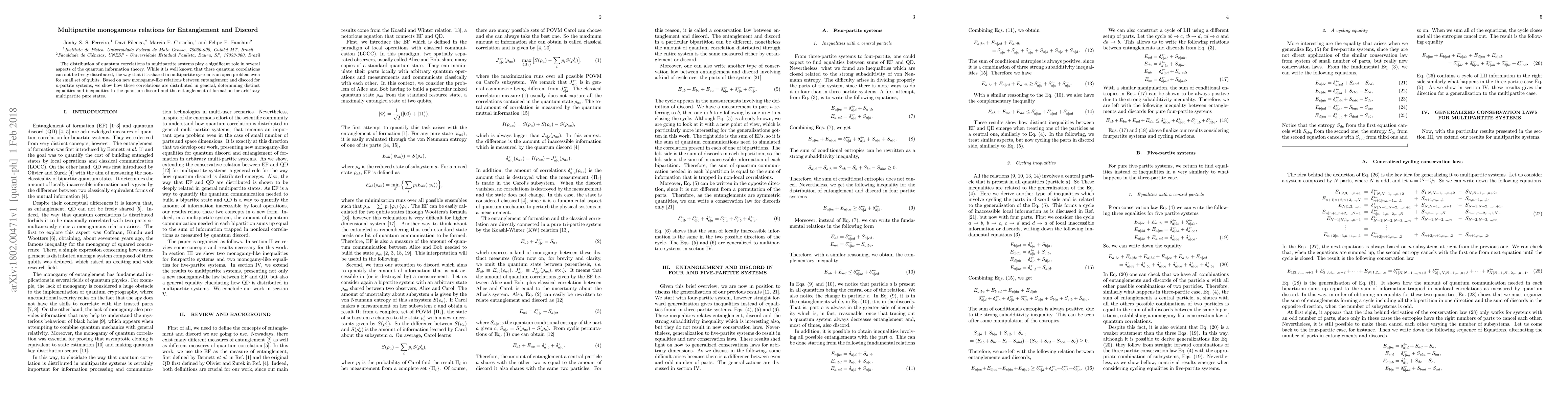 This paper explores new monogamy-like relations between entanglement and discord in multipartite quantum systems, revealing distinct equalities and inequalities that govern the distribution of quantum correlations in these systems. The findings provide insights into how quantum correlations are shared among multiple parties in quantum information theory.
