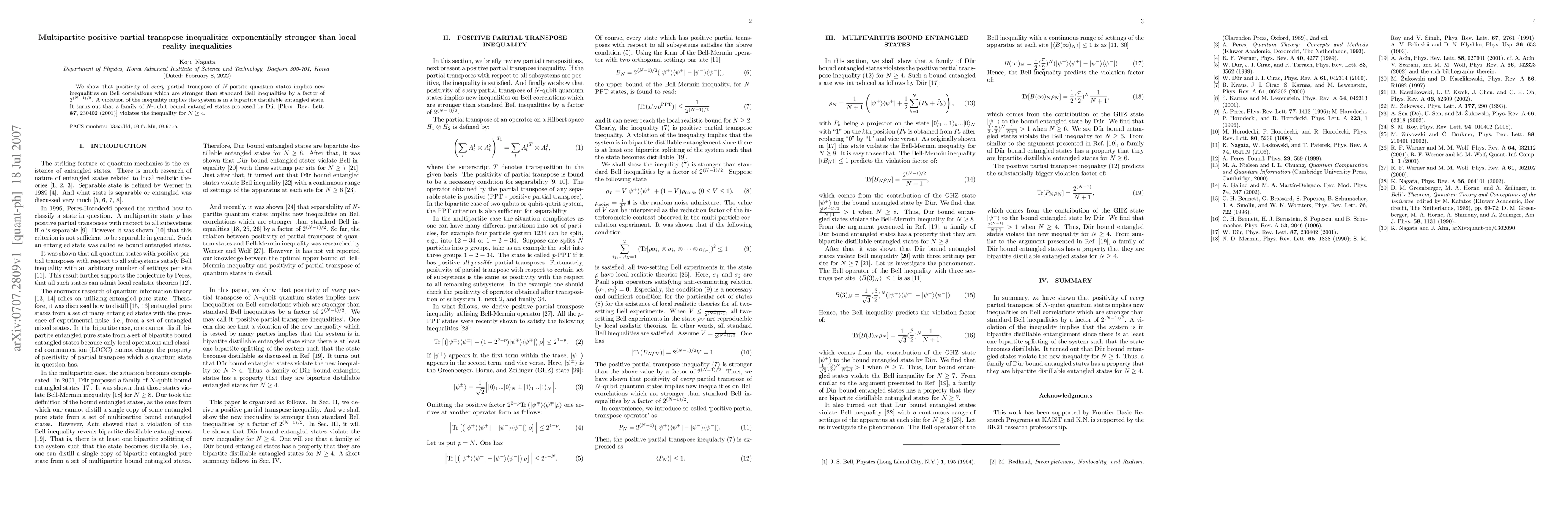 We show that positivity of {\it every} partial transpose of $N$-partite quantum states implies new inequalities on Bell correlations which are stronger than standard Bell inequalities by a factor of $2^{(N-1)/2}$. A violation of the inequality implies the system is in a bipartite distillable entangled state. It turns out that a family of $N$-qubit bound entangled states proposed by D\"ur {[Phys. Rev. Lett. {\bf 87}, 230402 (2001)]} violates the inequality for $N\geq 4$.