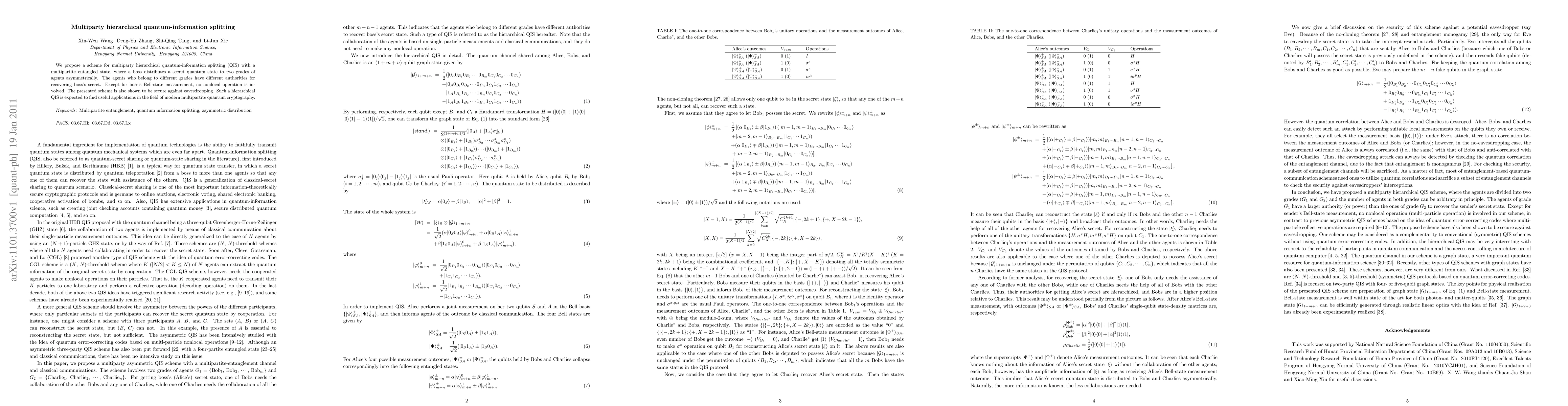 This research proposes a multiparty hierarchical quantum-information splitting scheme that securely distributes secret quantum states among agents with different authorities, without using nonlocal operations. It has potential applications in modern multipartite quantum cryptography.