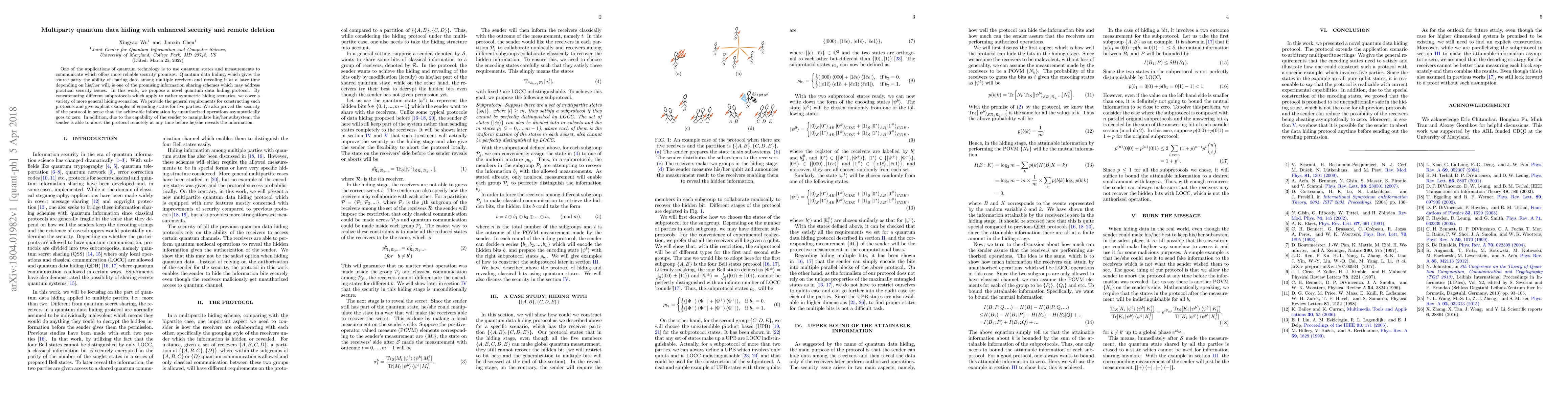 Researchers propose a novel quantum data hiding protocol that allows secure sharing of information among multiple parties, enabling remote deletion and manipulation of the shared data. The protocol provides enhanced security and guarantees the asymptotic vanishing of accessible information to unauthorized users.