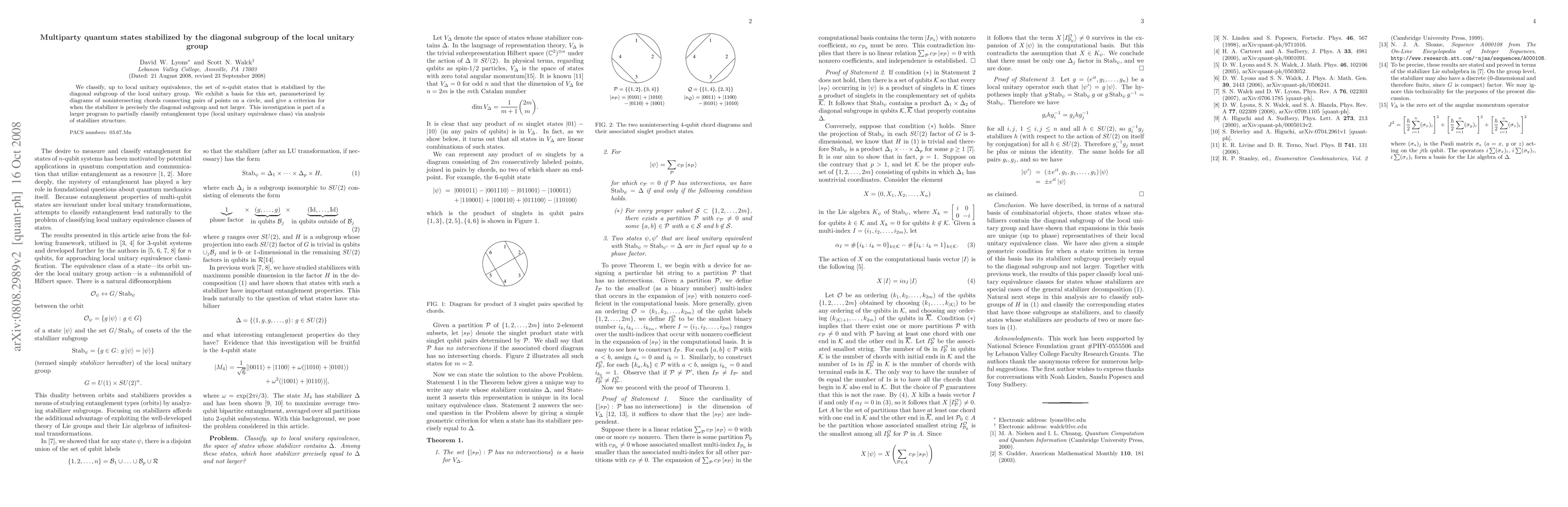 This paper classifies $n$-qubit quantum states stabilized by the diagonal subgroup of the local unitary group, presenting a basis for this set parameterized by nonintersecting chord diagrams and identifying conditions for full stabilization by this subgroup. The work aims to partially classify entanglement types through stabilizer structure analysis.
