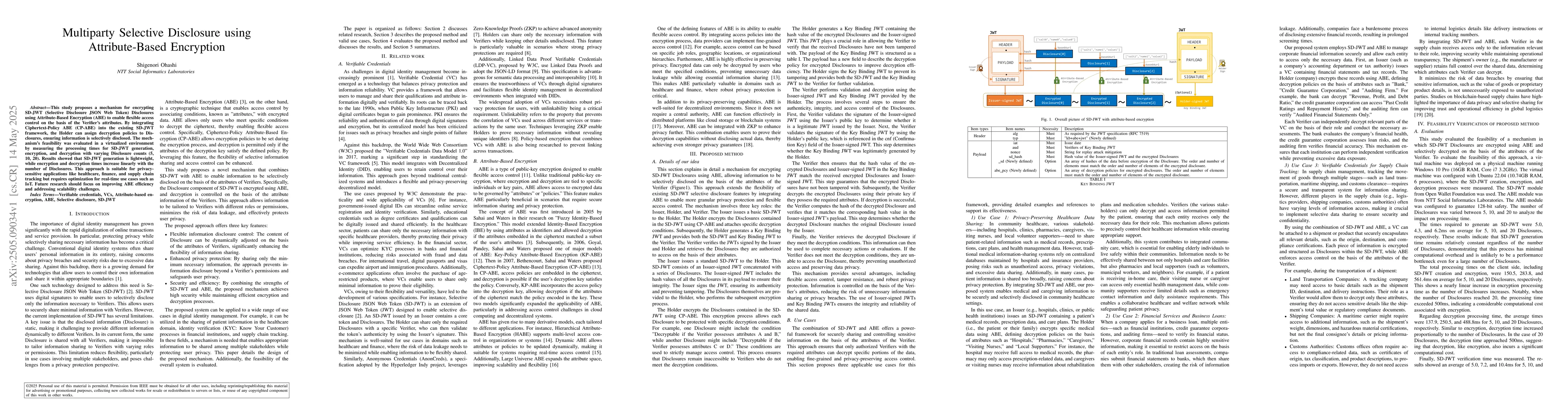 This work introduces a novel mechanism for encrypting SD-JWT Disclosures using ABE, enabling Holder-defined decryption policies for selective information disclosure.